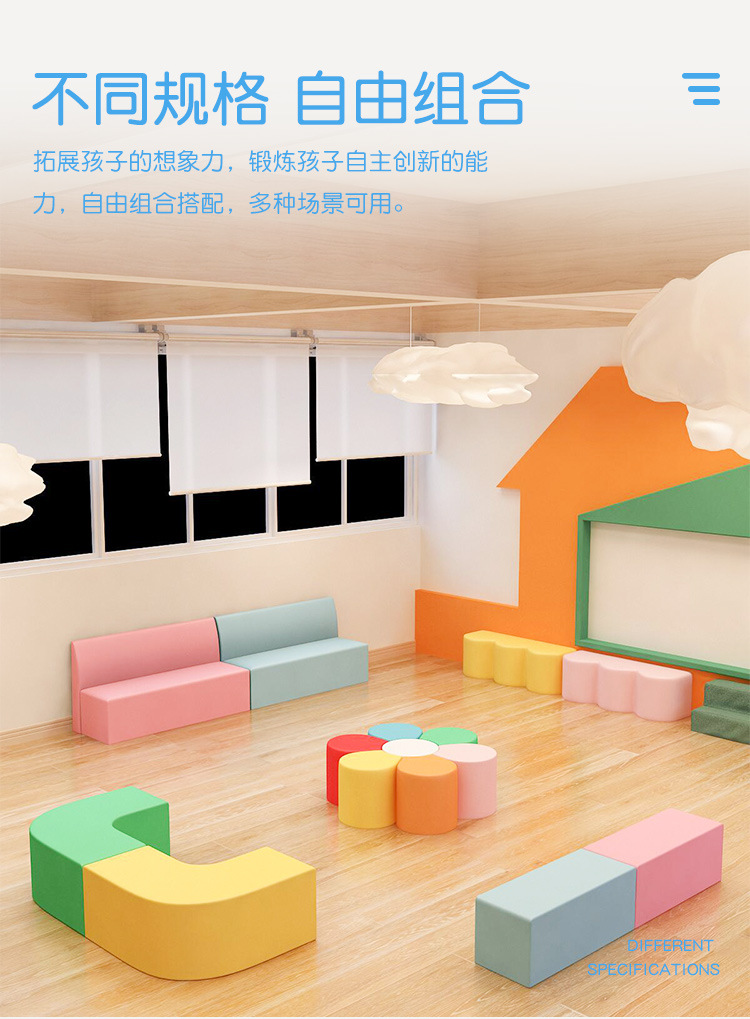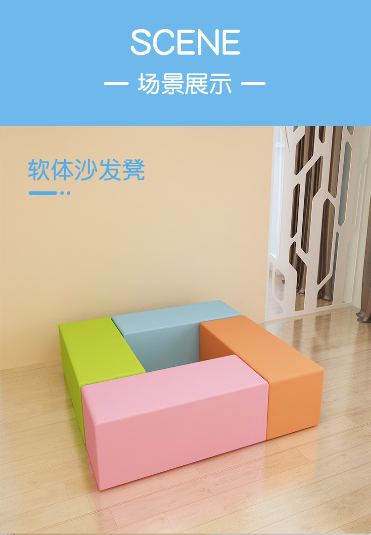 Early Education Center Sofa Stool Rectangular Shoe Changing Stool Home Footstool Sitting Soft Bag Cushion Long Stool Soft Bag