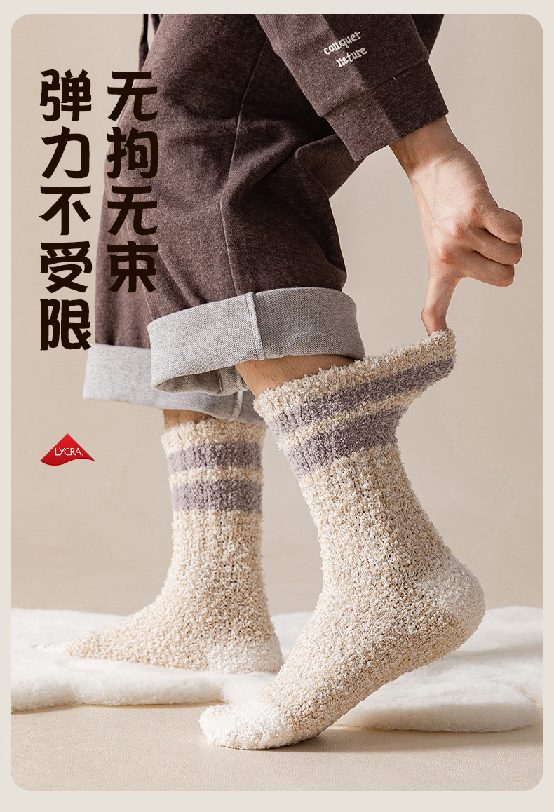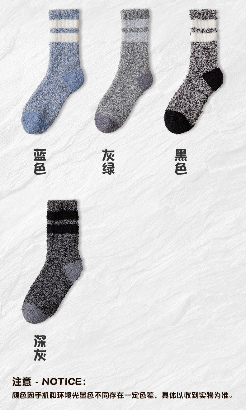 Black Socks Men's Mid-Calf Length Sock Autumn and Winter Thick Coral Fleece Home Plush Room Socks Winter Warm Stockings