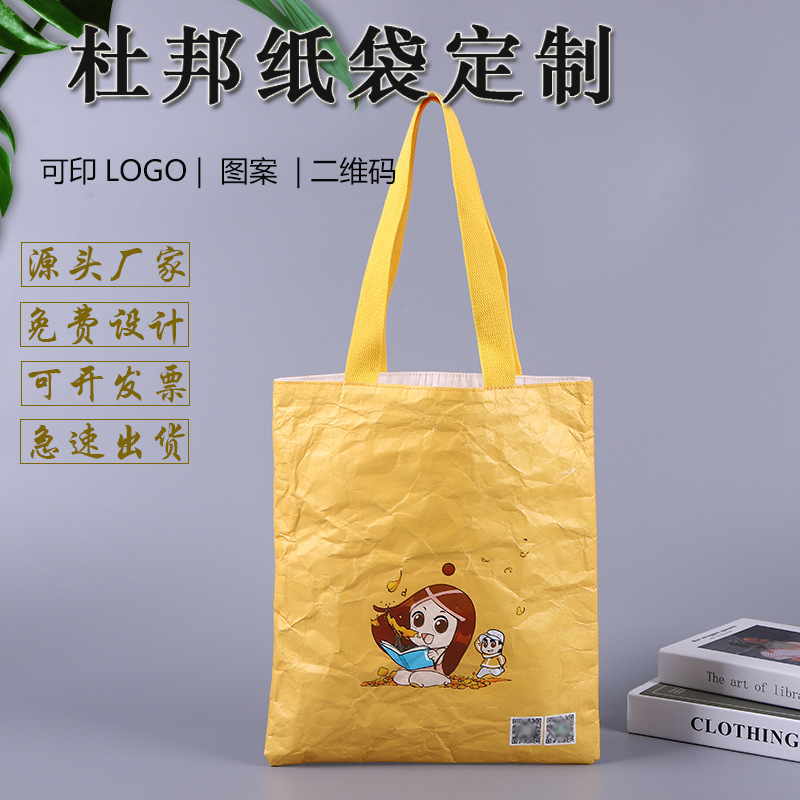 Factory Wholesale Spot Washable Kraft Paper Portable Paper Bag Custom Kneading Pattern DuPont Paper Bag Tyvek