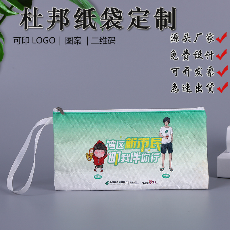 Spot Washed Tyvek Advertising Cosmetic Bag Printed Logo Kneading Pattern DuPont Paper Bag Kraft Paper Zipper Storage Pencil Case