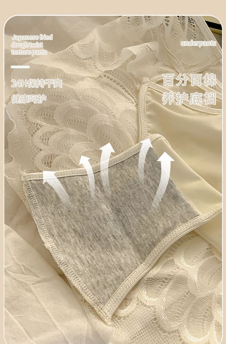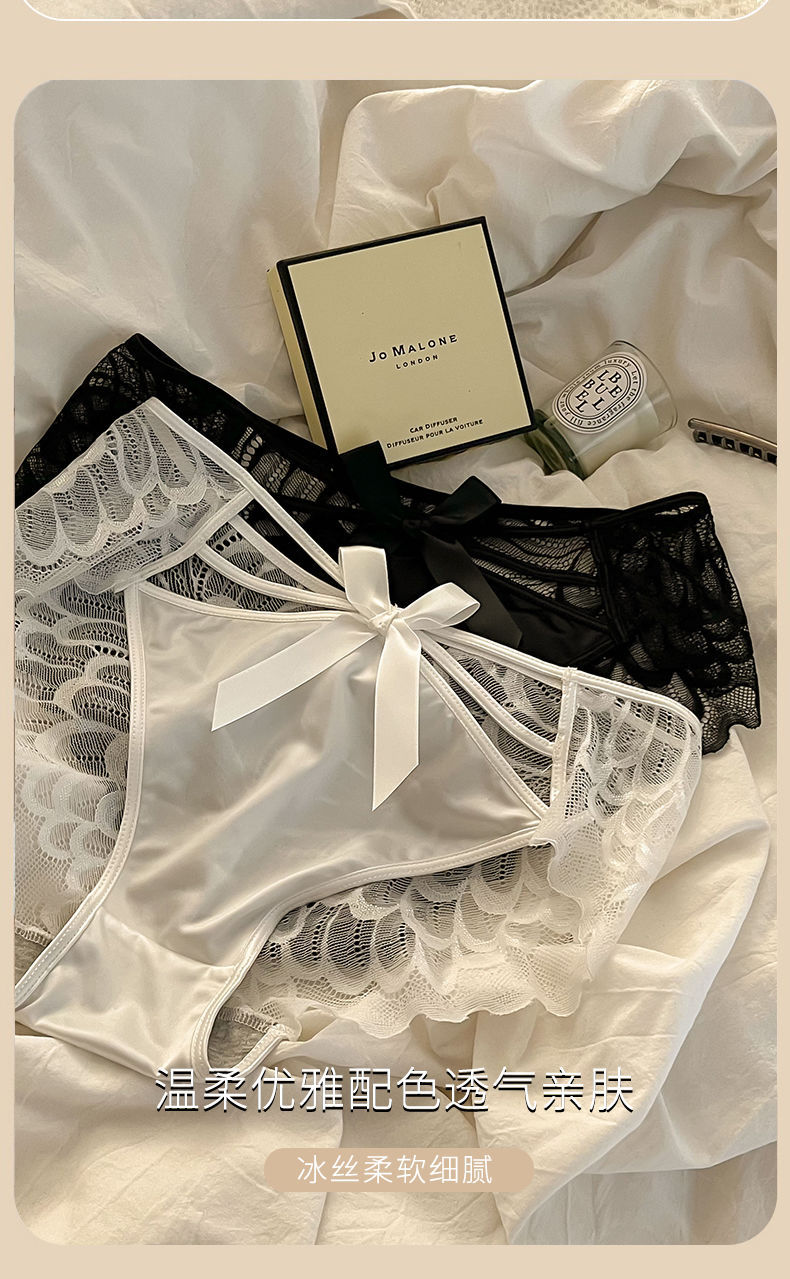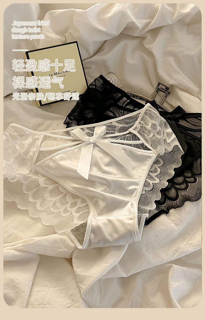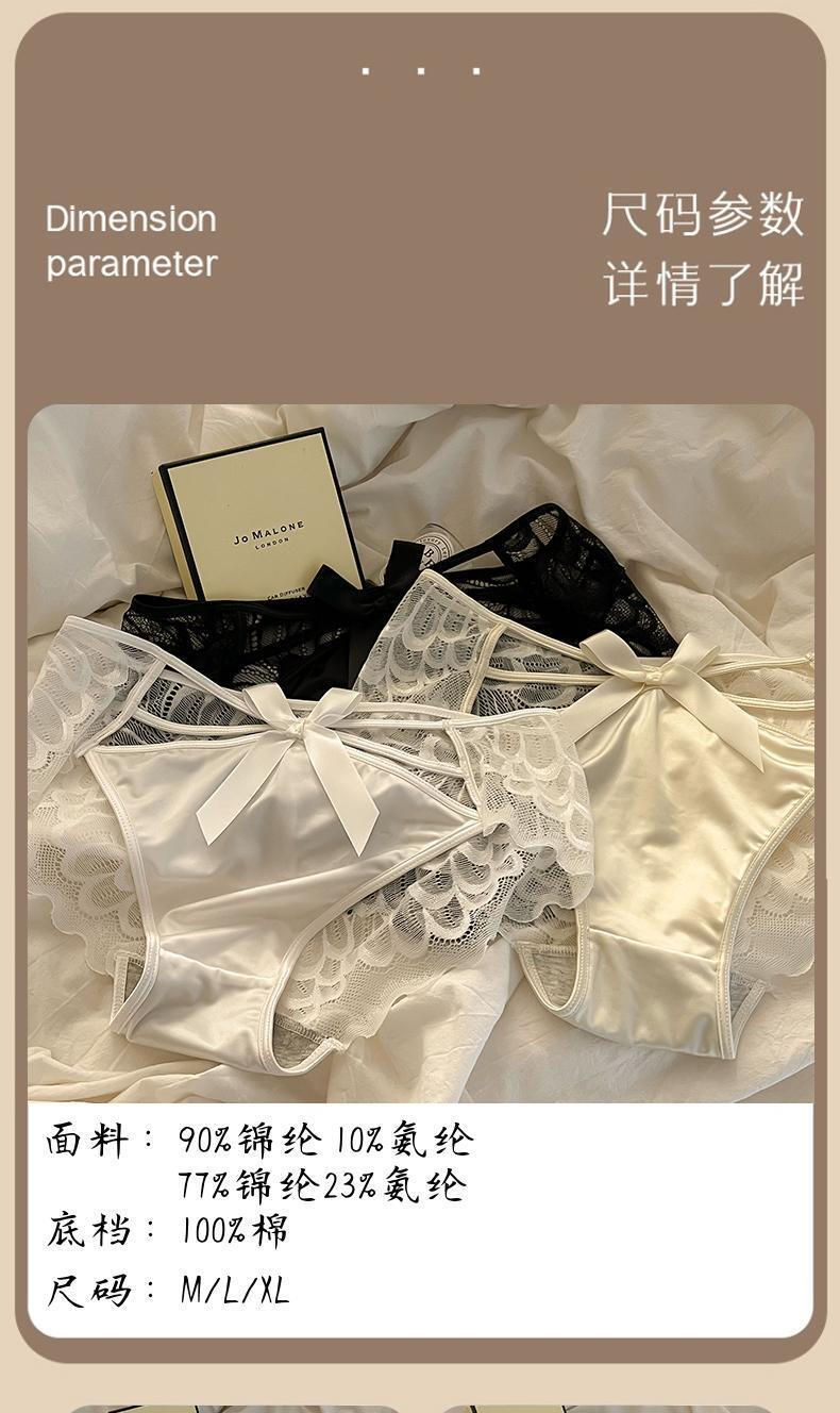 Angel Wings Pure Sexy Transparent Cutout Lace Underwear Female Mid-Waist Purified Cotton Crotch Women's Briefs