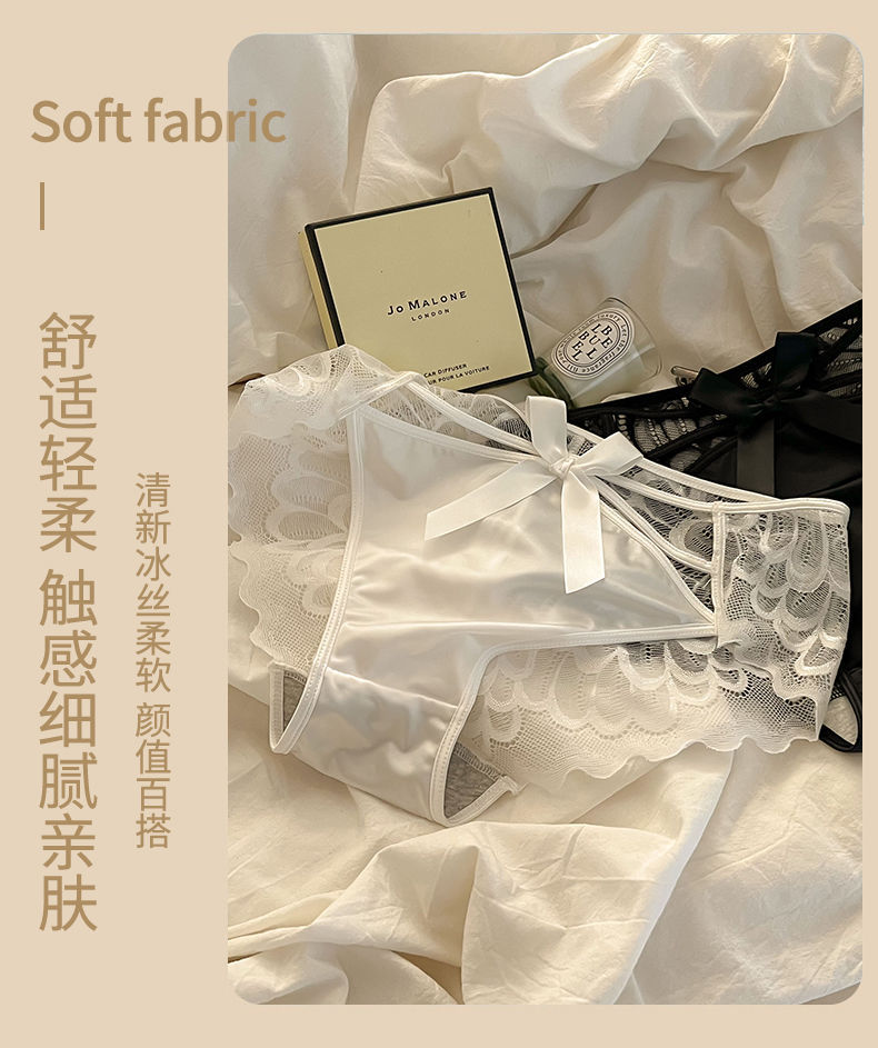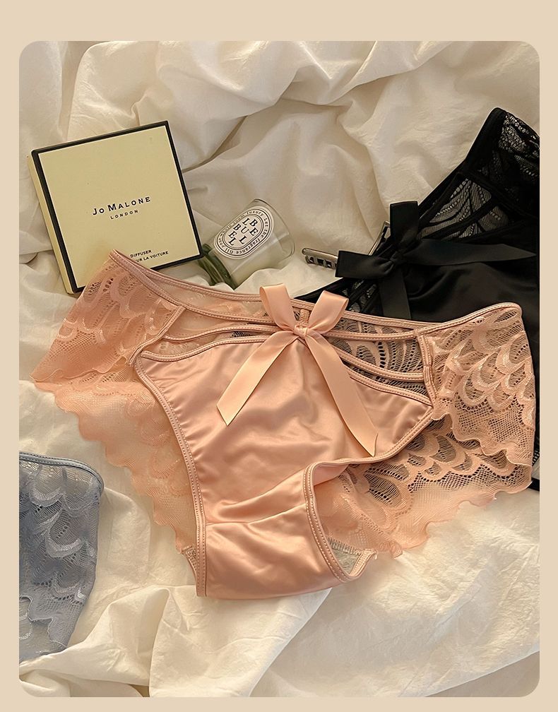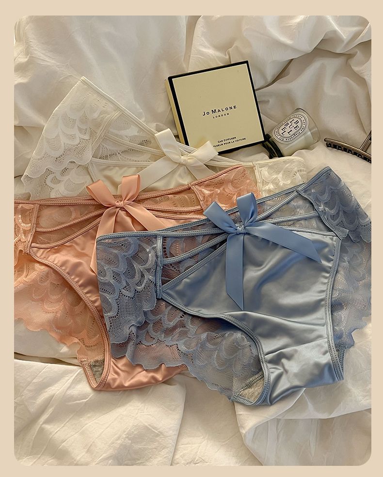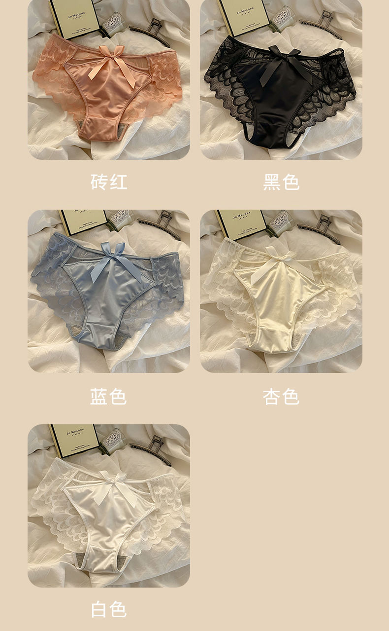 Angel Wings Pure Sexy Transparent Cutout Lace Underwear Female Mid-Waist Purified Cotton Crotch Women's Briefs
