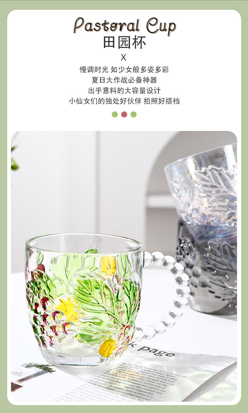 grape bead cup with handle artificial hand-painted household drinking cup creative large capacity simple dining cup