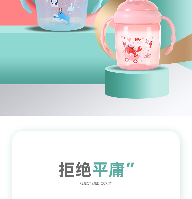 New Cartoon Handle Baby Pp Feeding Bottle Wide Mouth Drop-Resistant Anti-Flatulence Feeding Bottle Cross-Border Maternal and Child Supplies Wholesale