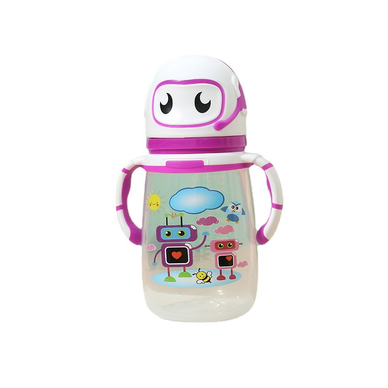 Cross-Border Foreign Trade Baby Cartoon Pp Feeding Bottle with Handle Silicone Plastic Milk Powder Bottle Baby Anti-Flatulence Feeding Water Bottle