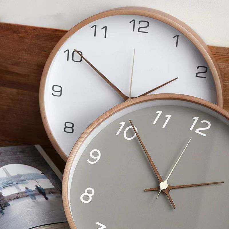 Nordic Wooden Wall Clock Living Room Clock Fashion Home Mute Creative Clock Simple Punch-Free Light Luxury Modern Pocket Watch