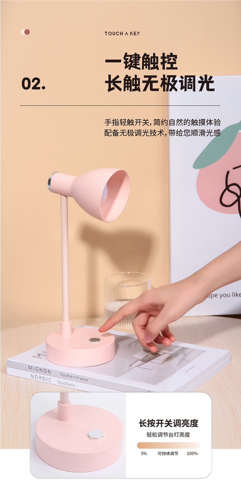 product function: touch three color temperature long press electrodeless dimming