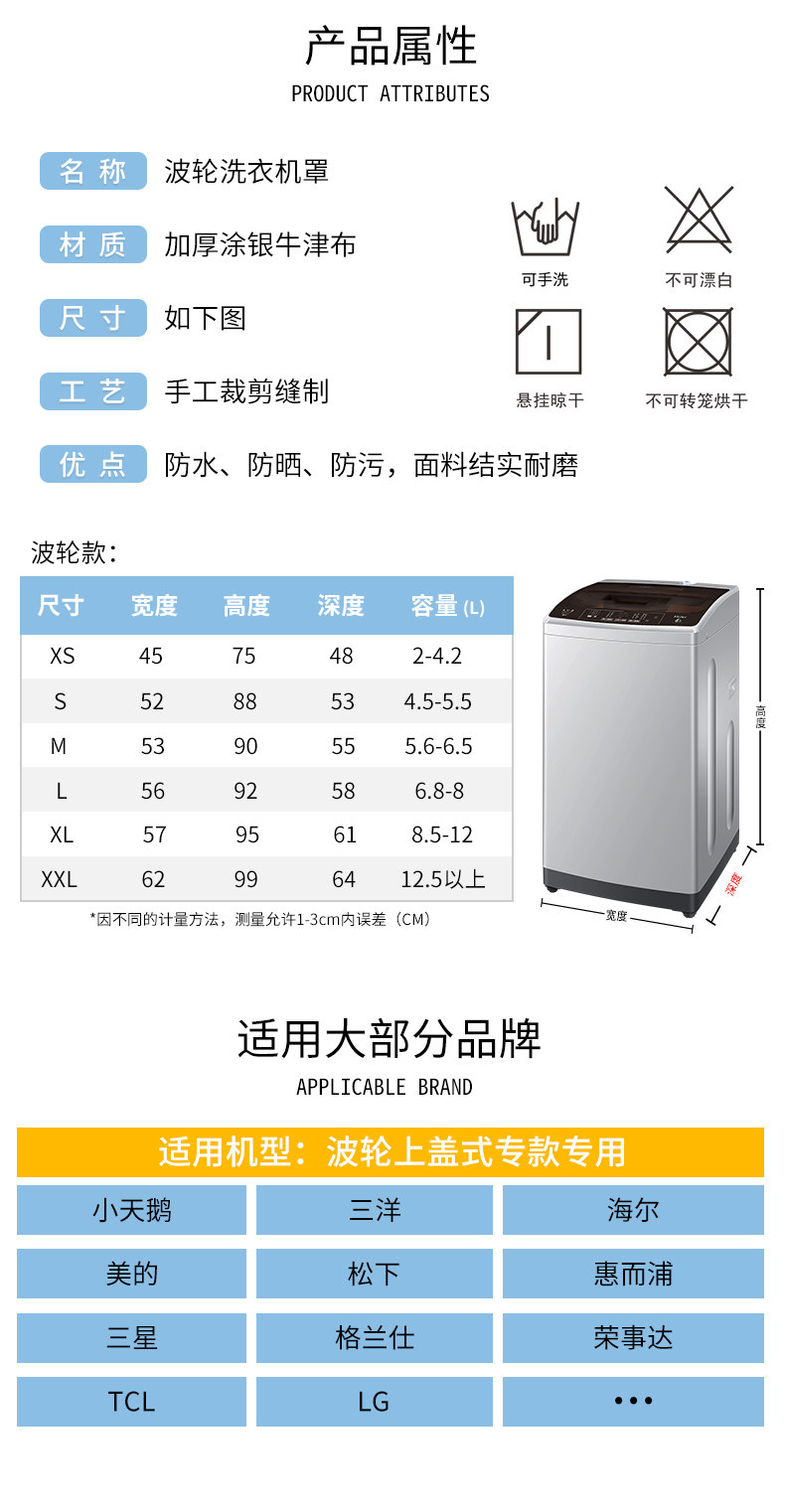 Impeller up-Open Washing Machine Cover Protector Ins Simple Dust Cover Waterproof and Sun Protection Haier Little Swan Universal