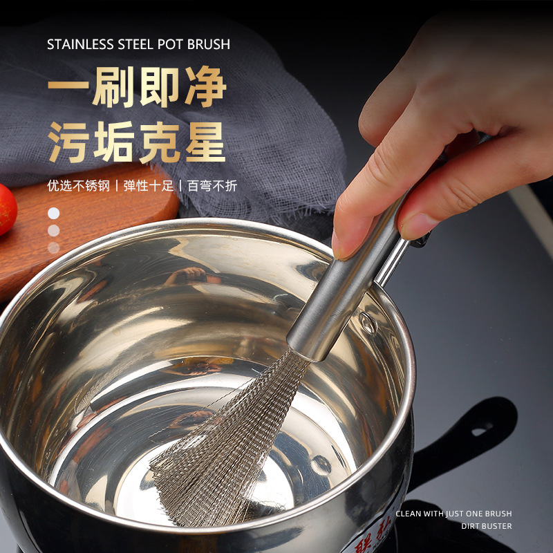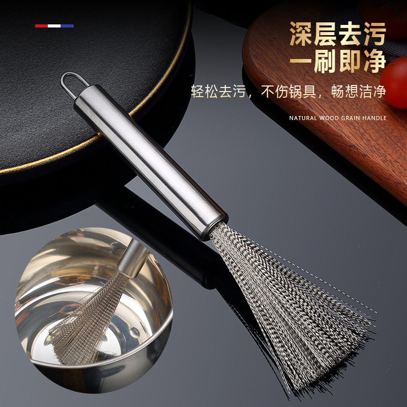 Stainless Steel Wok Brush Household Hanging Easy Cleaning Brush Kitchen and Canteen Cleaning Kitchenware Special Steel Wire Marvelous Pot Cleaning Accessories