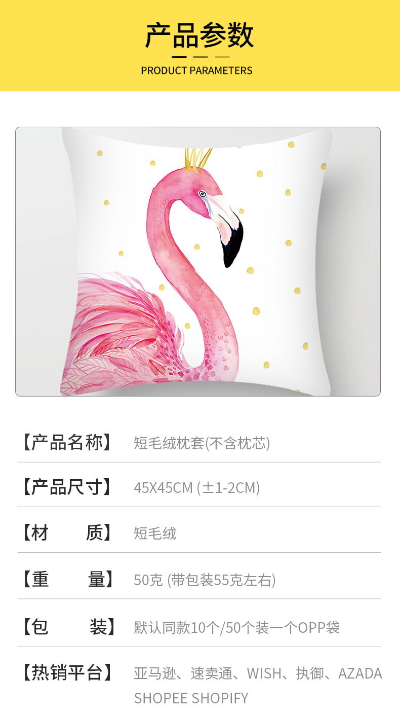 Fresh Flamingo Pillow Cushion Ins Style Living Room Sofa Chair Waist Pillow Short Plush Back Cushion