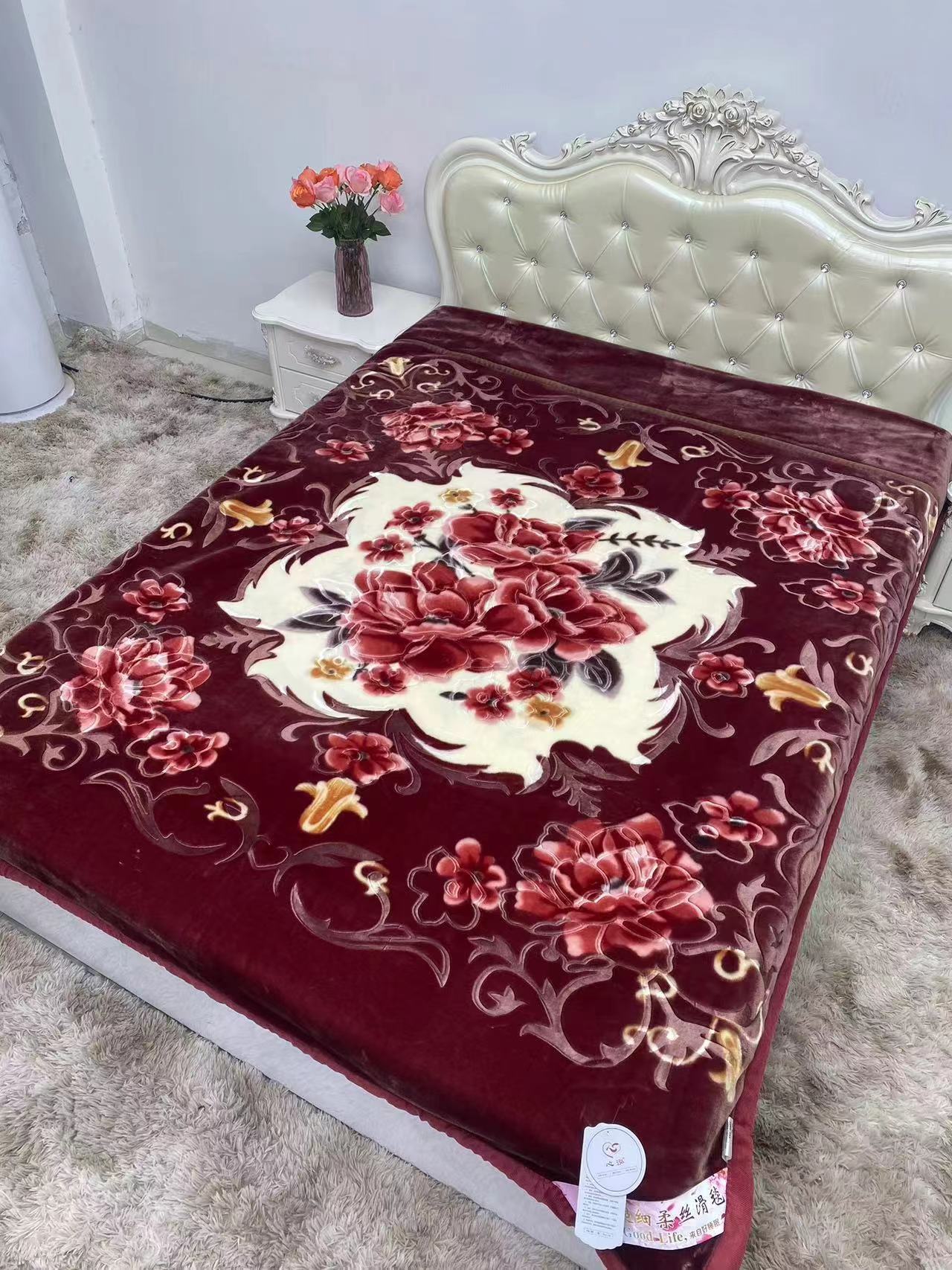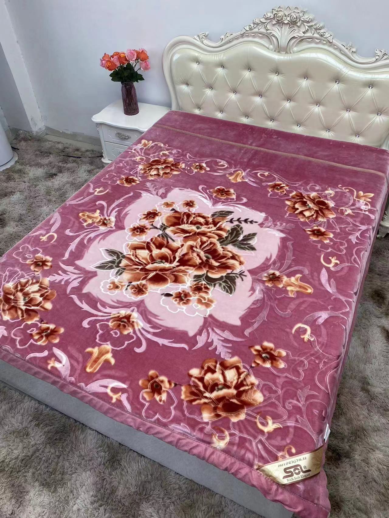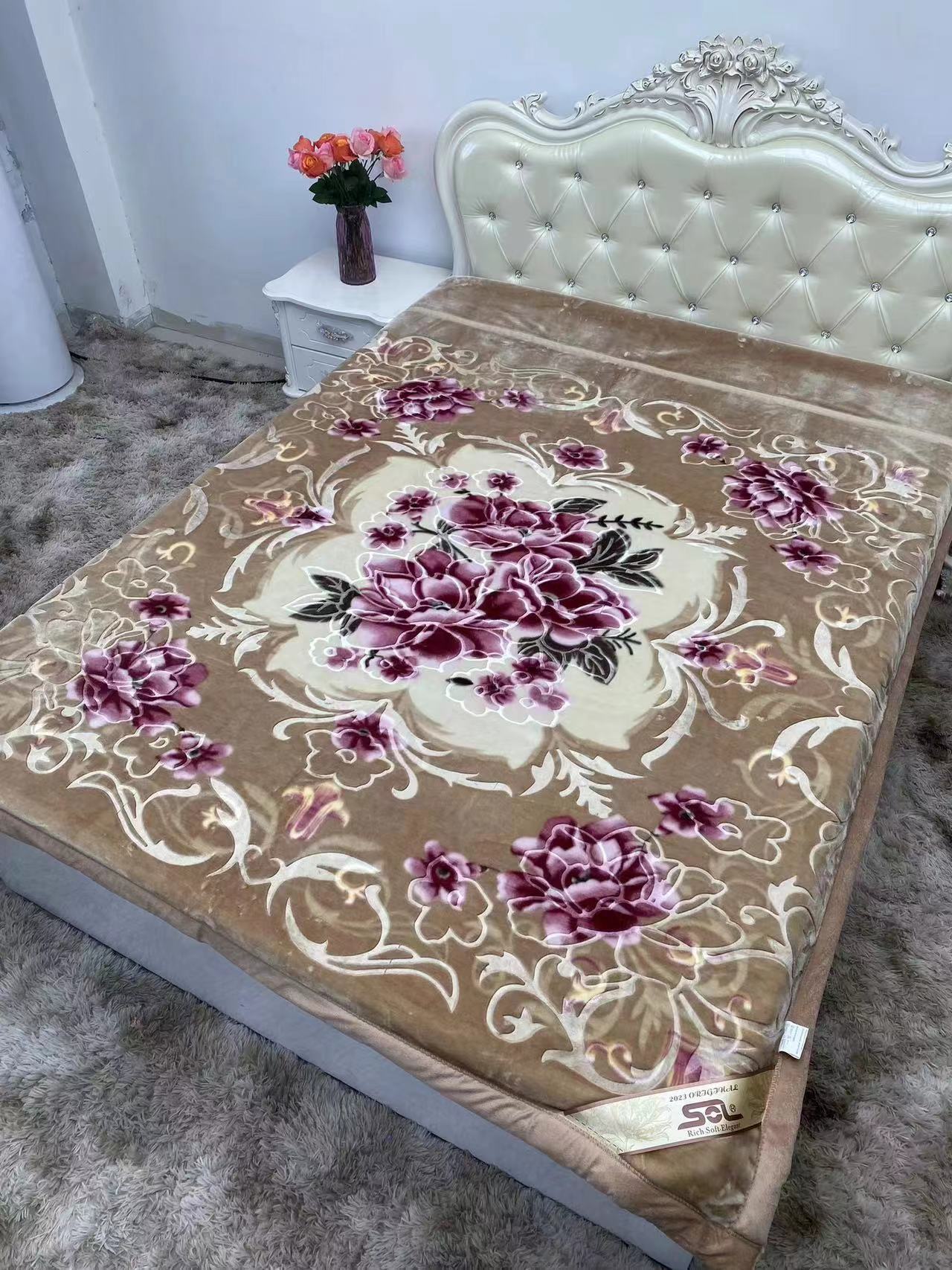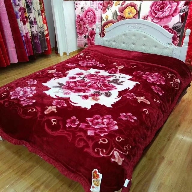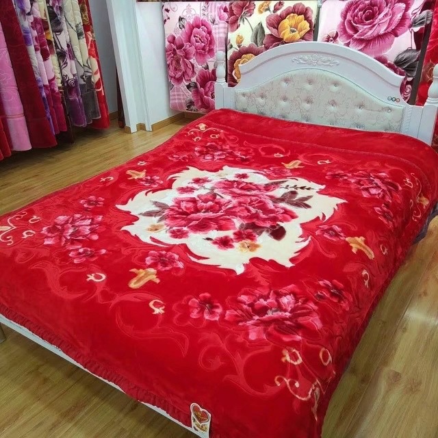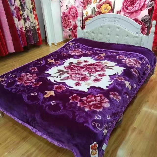 Factory Direct Sales New Double Thick Wedding Double Raschel Printing Embossed Belt Quilt Blanket Wholesale Foreign Trade