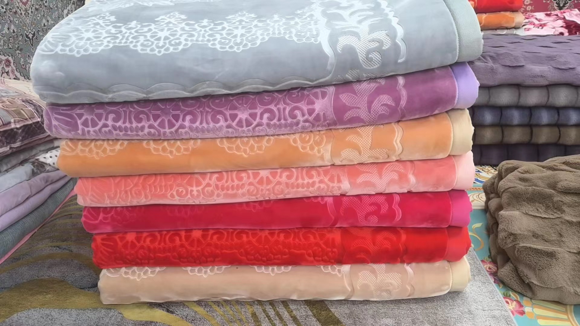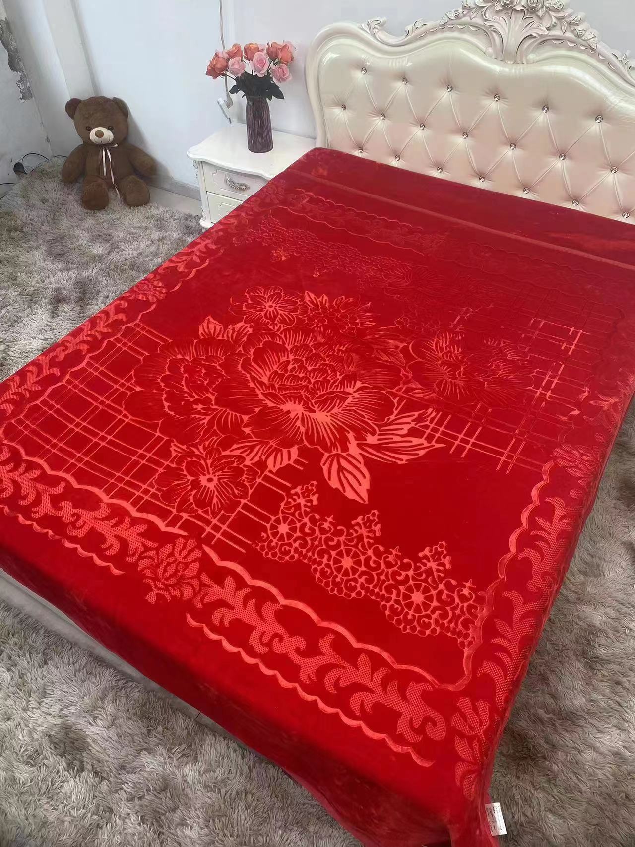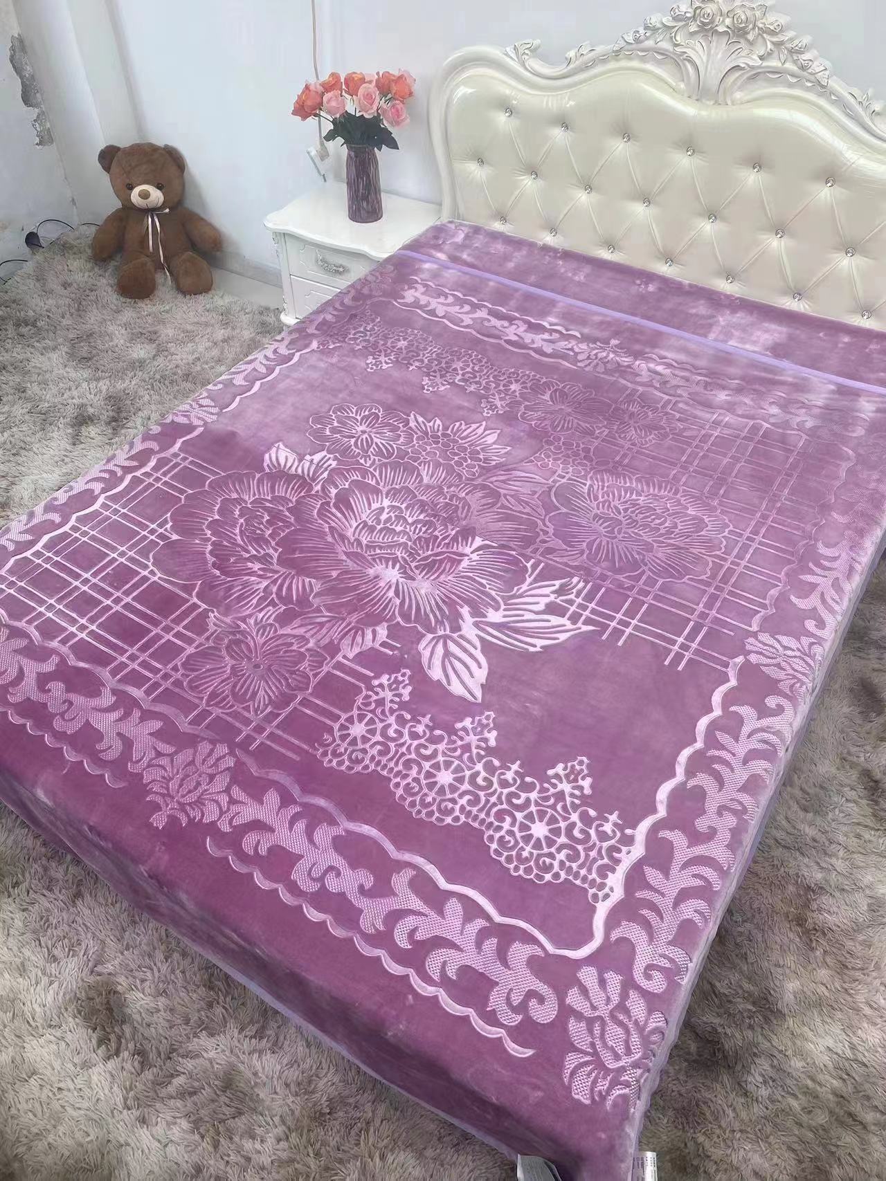 Factory Direct Sales New Double-Layer Double Plain Color Thickened Single-Sided Embossed Cloud Blanket Wholesale Foreign Trade Export Blanket