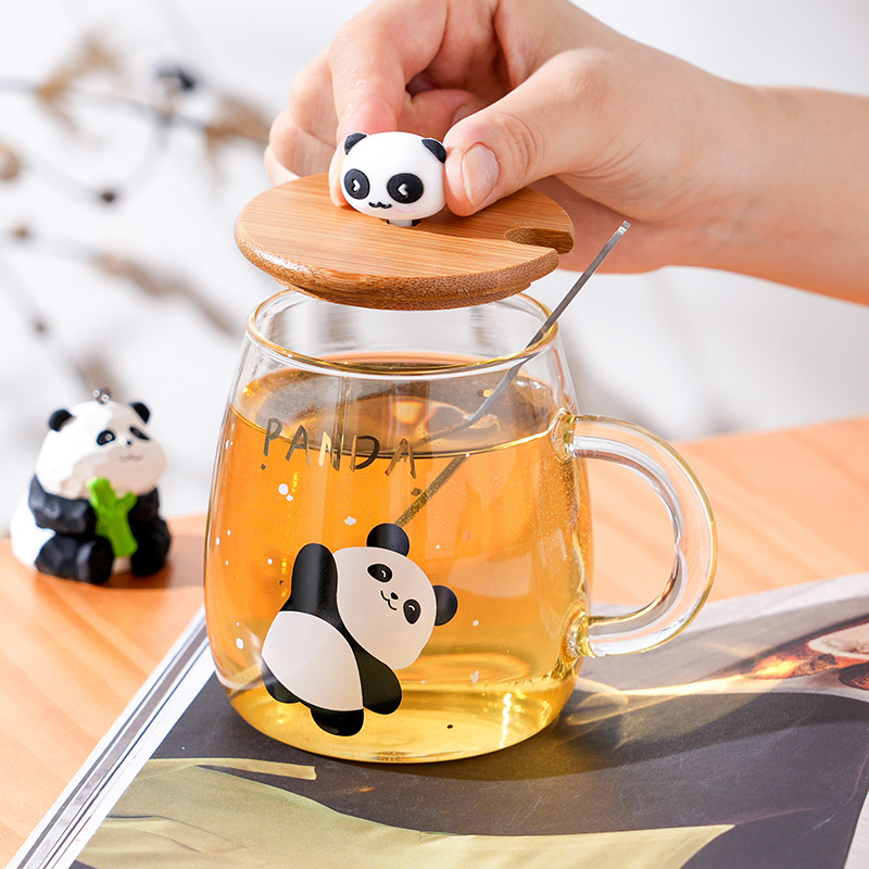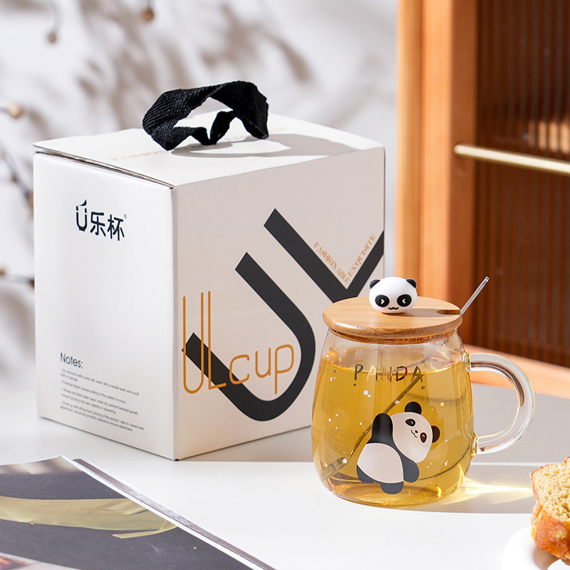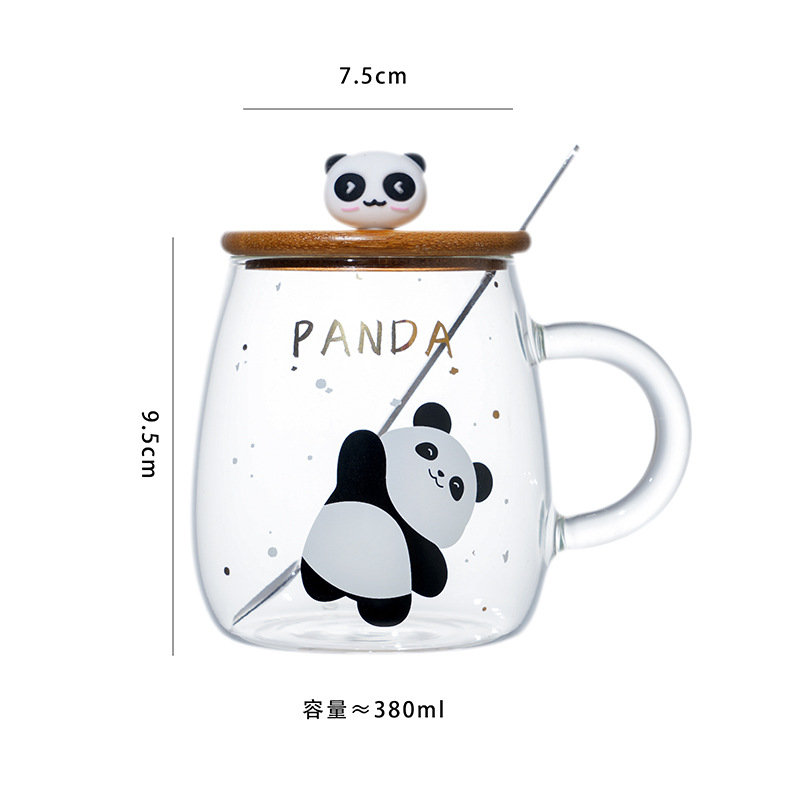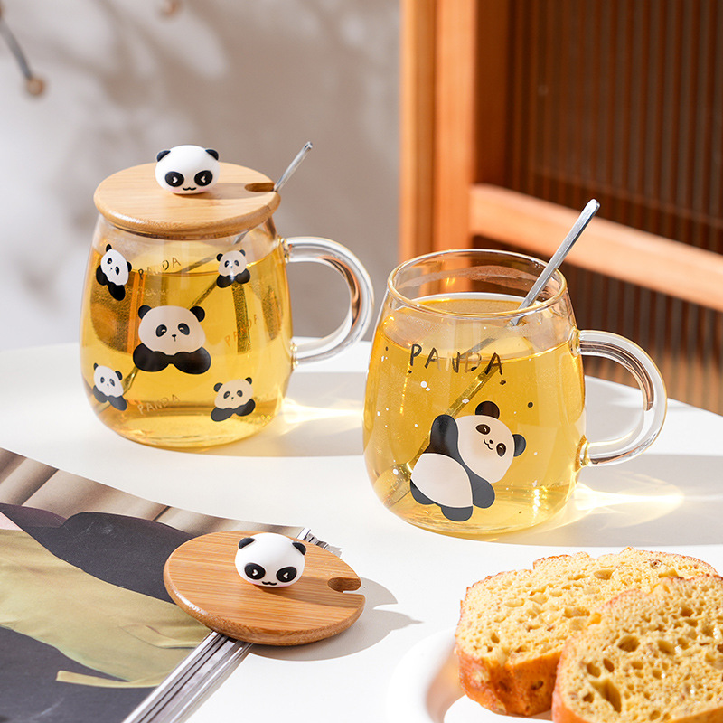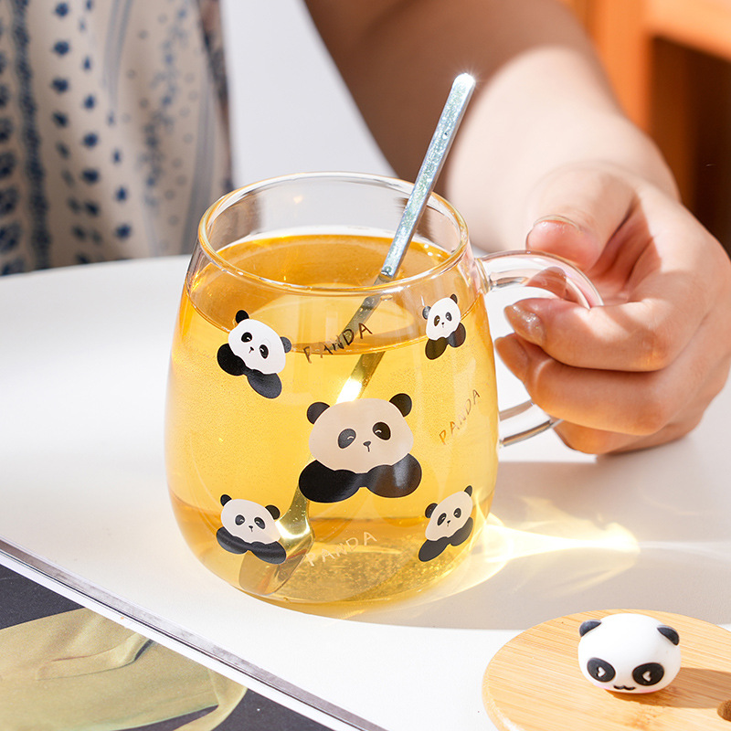 Glass Cartoon Panda Good-looking High Temperature Resistant Glass with Handle Creative Student Cup Breakfast Cup Milk Cup