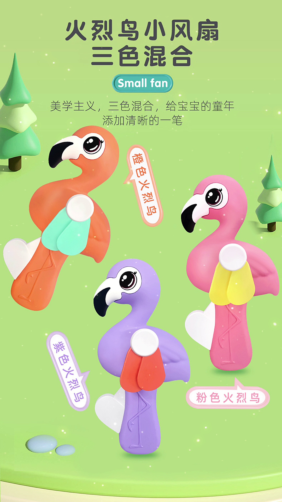 cartoon hand pressure flamingo little fan children's toy push-type manual fan stall small gift toy wholesale