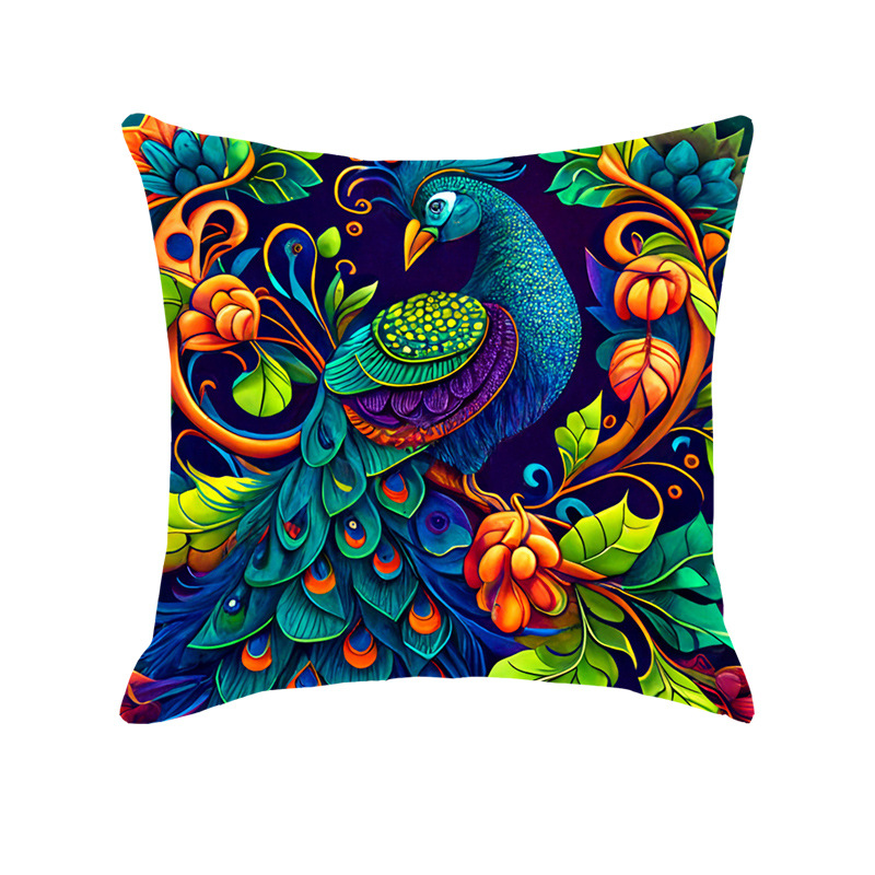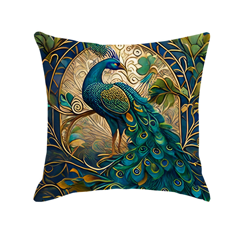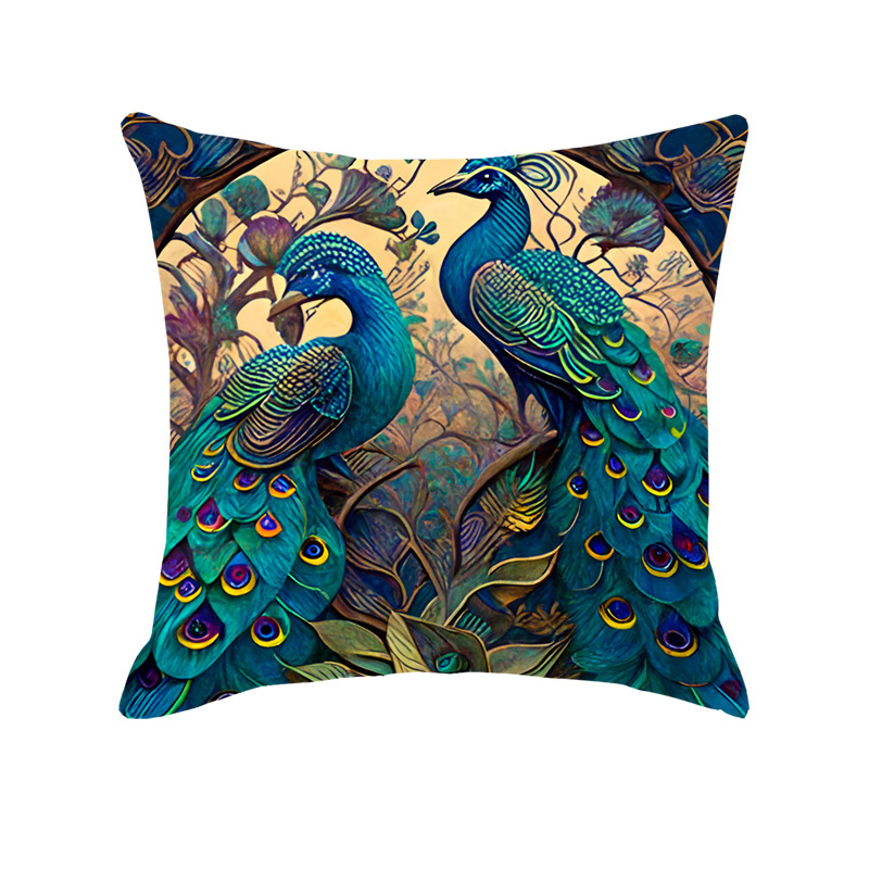 Amazon Light Luxury Oil Painting Peacock Printings Linen Pillow Cover Home Sofa and Bed Cushions Car Cushion Wholesale