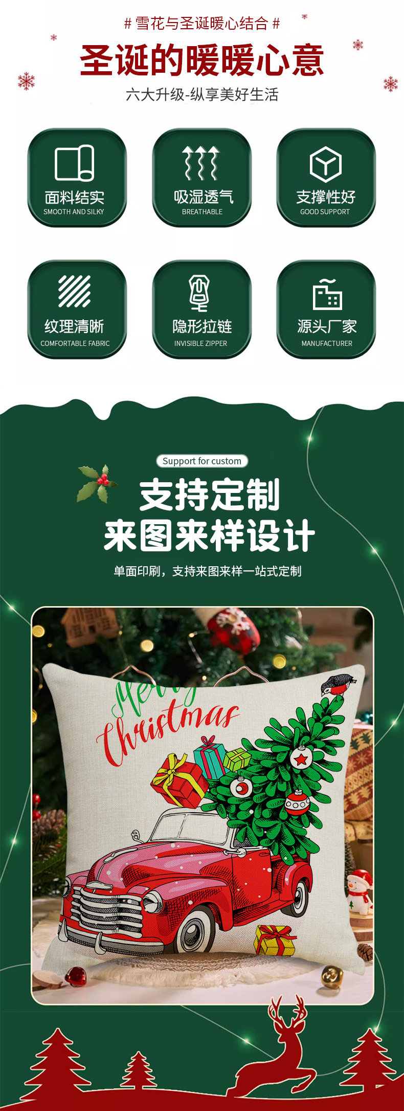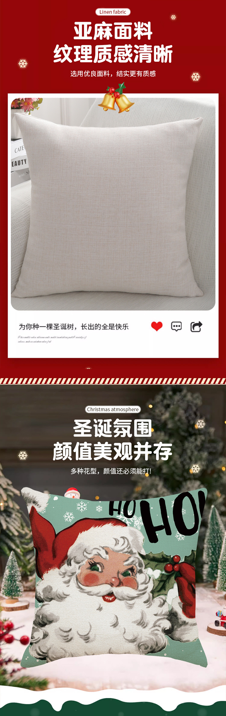 New Christmas Linen Pillow Cover Simple Single-Sided Printing Cushion Cover Home Car and Sofa Christmas Pillow