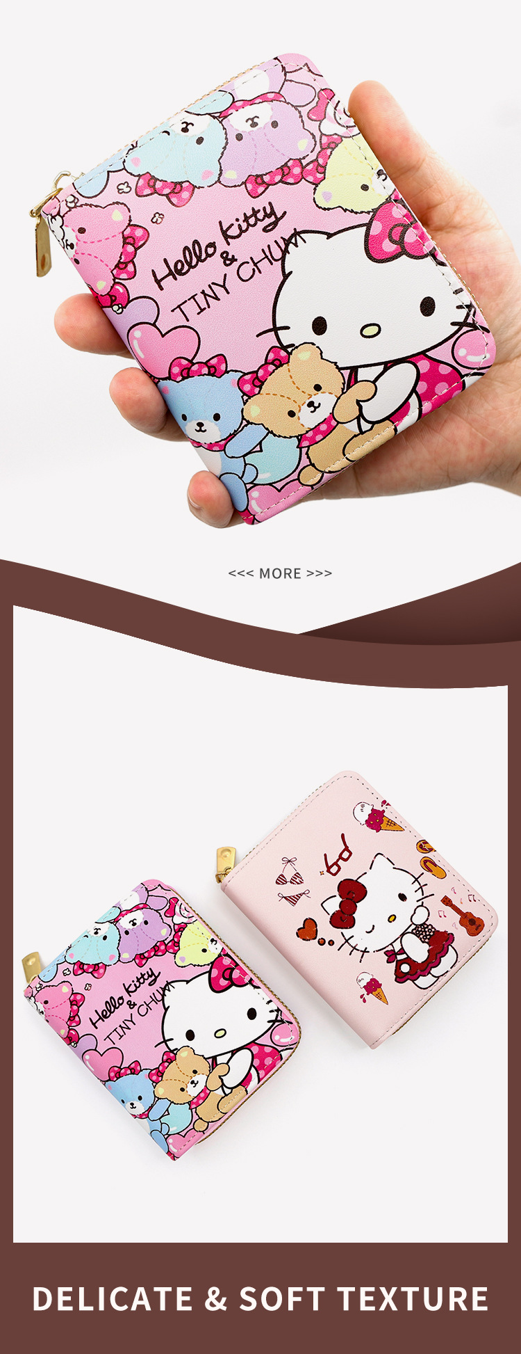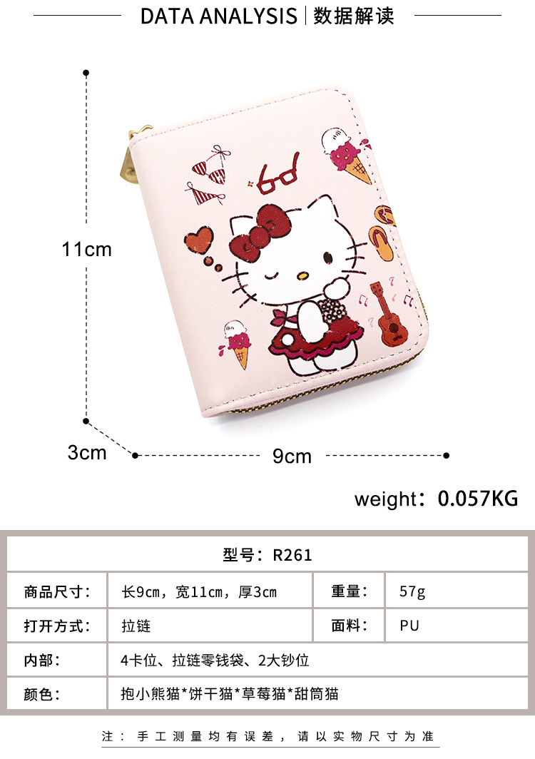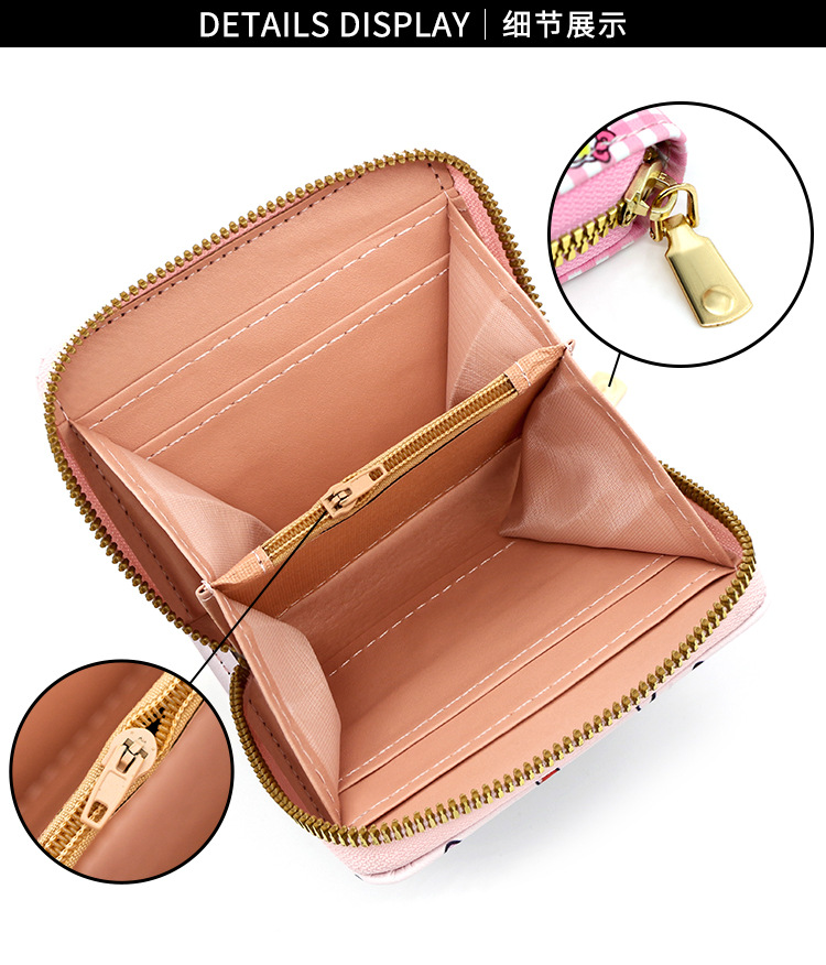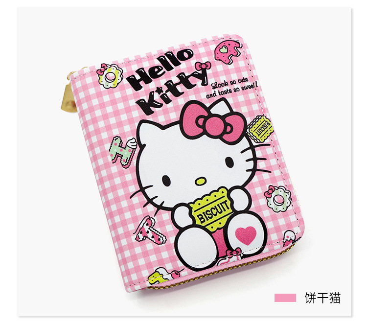 Cartoon Animation Women's Wallet PU Leather Printed Wallet Mini Cute Short Pull Coin Purse Card Holder Hello Kitty