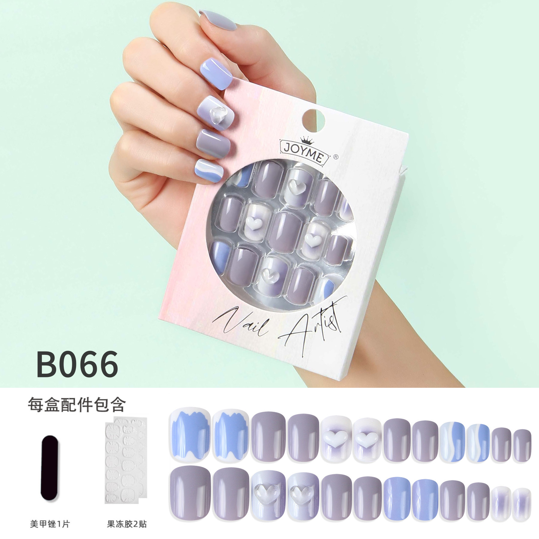 [Packing method] 24 pieces of fake nails +1 piece of Polish Bar +2 pieces of Jelly Glue into a box of 12 boxes in a medium pack of 480 boxes in a box