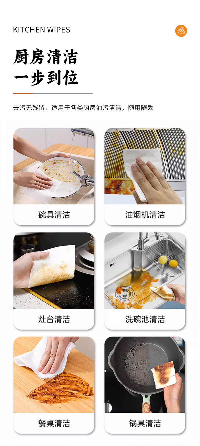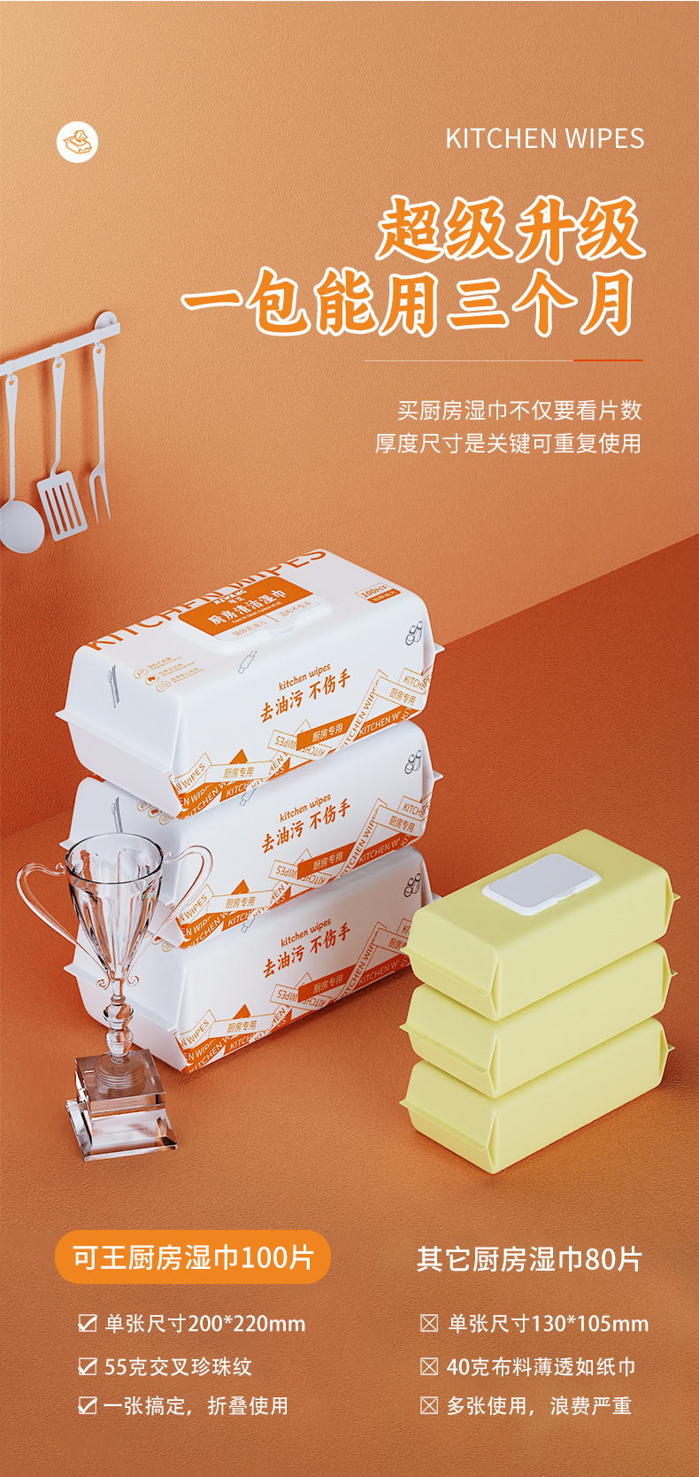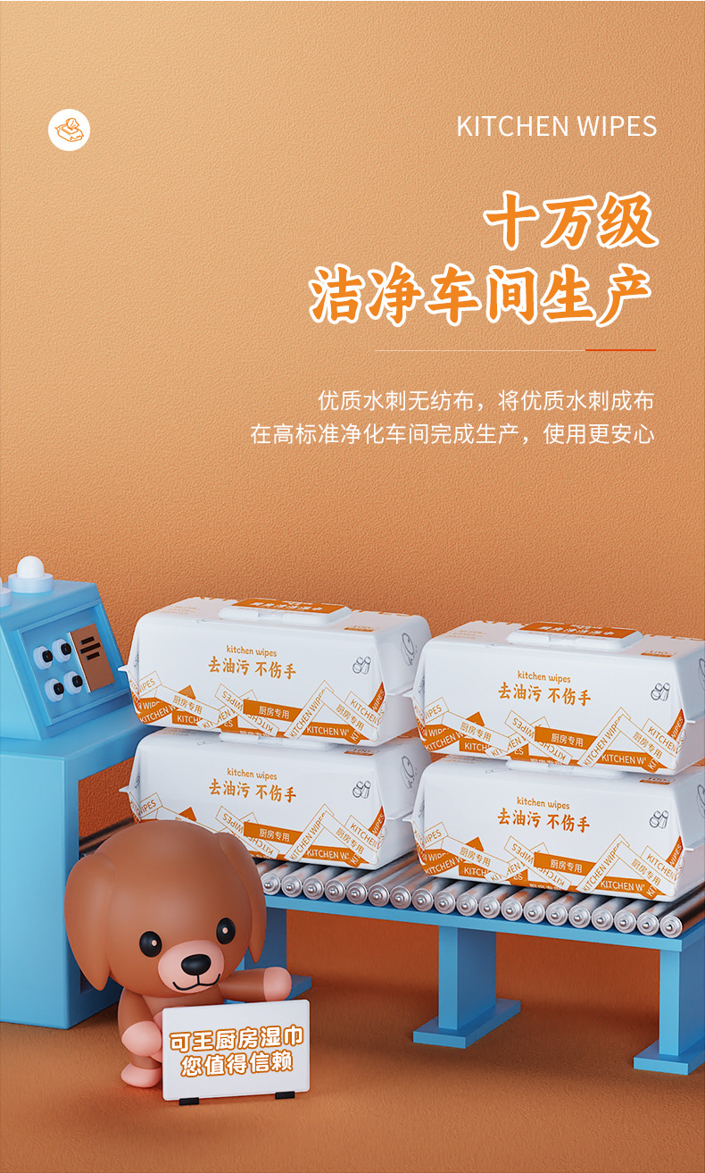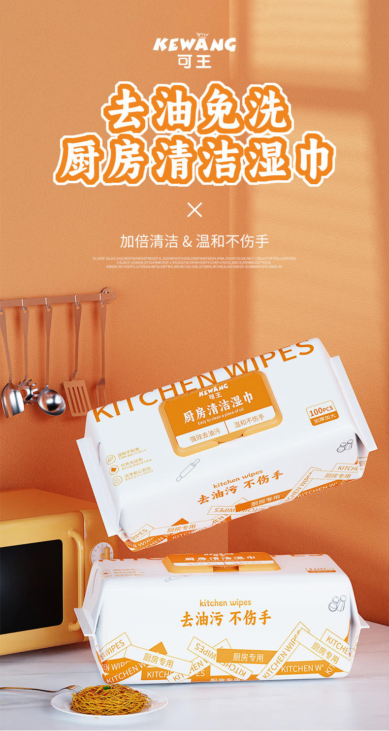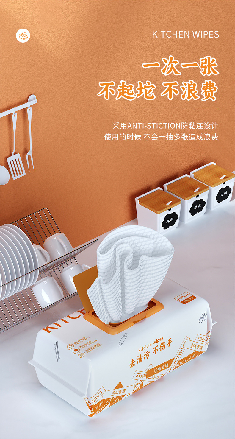 Kewang 100 Pumping Kitchen Wipes Big Tote Bag Decontamination Oil Removing Kitchen Cleaning Wipe Disposable Rag