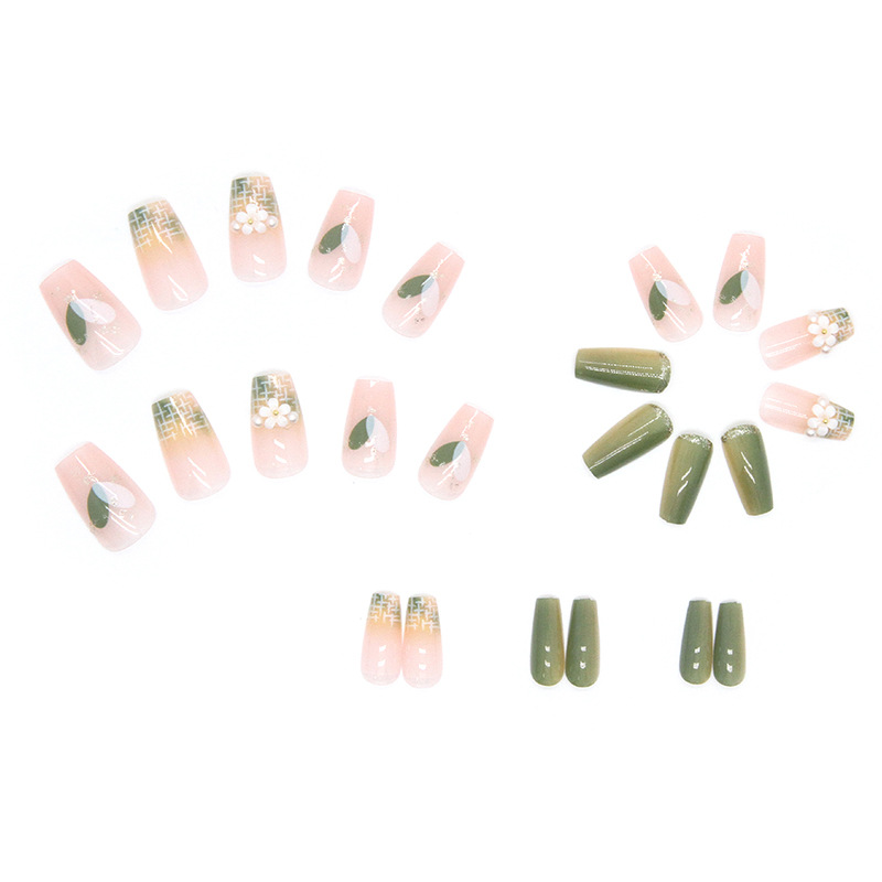 Mid-Length Fake Nails Summer Dream Two-Tone Gradient Manicure Wear Nail Finished Product Wholesale Three-Dimensional Pearl Five Petal Flower