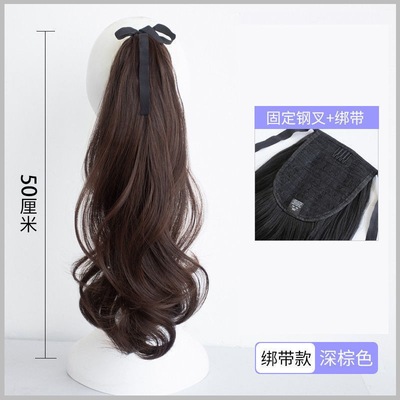 Ponytail wig for women with long hair, clamp-style ponytail, large wave, high ponytail, natural-looking, invisible binding, long wavy hair, fake ponytail