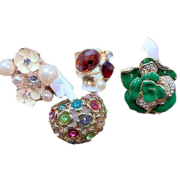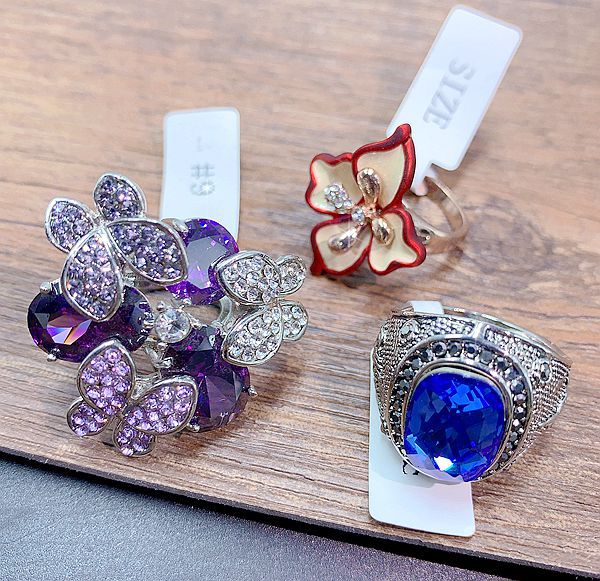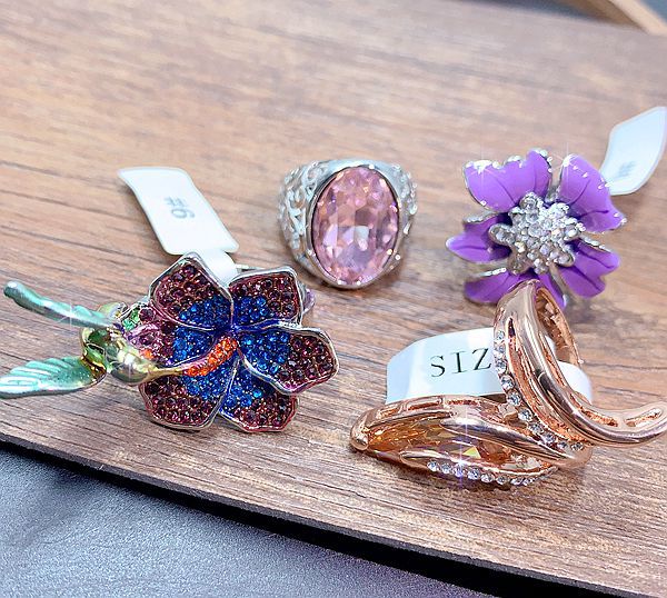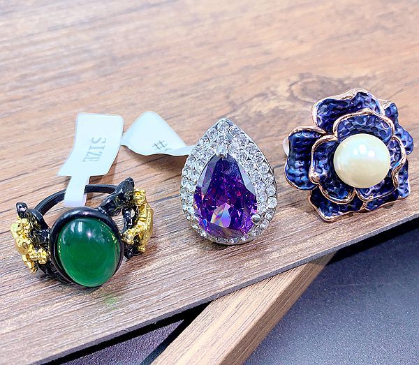 The rings in this area have a very high cost-performance ratio. They are made of alloy with electroplated color retention, and the main style is a combination of European and American exaggerated, literary, and retro styles. There are some very exaggerated and individualistic designs, with larger sizes. There are also some beautifully set diamond and gemstone models, as well as some cute animal-themed designs. The rings have good electroplated color retention, with good color retention. The designs are novel and the shapes are exquisite.In a nutshell, it's totally worth it!!