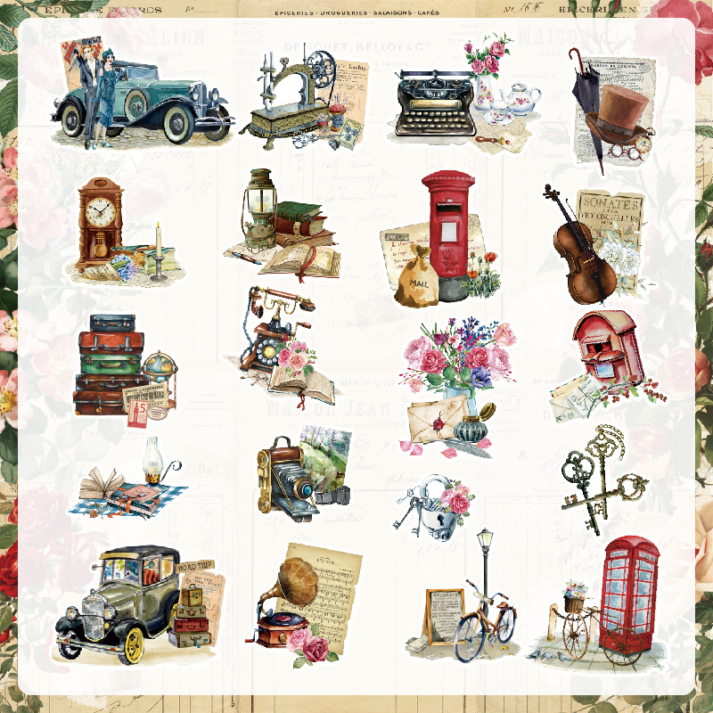 5 Models Cross-Border Hot Selling 40 Pieces with Back Glue Paper Bags Artistic Retro Style Notebook Sample Data Material Stickers