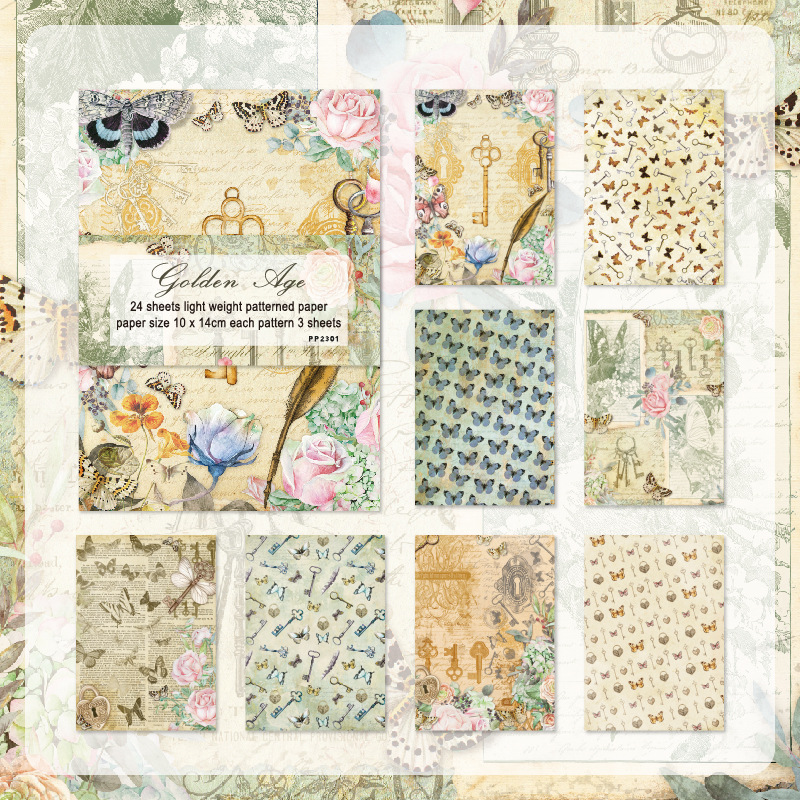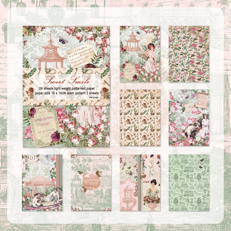 24 DIY Album Cut Stickers Hand Account Material Paper Retro Lady Background Paper Pattern Sticker Pp Series