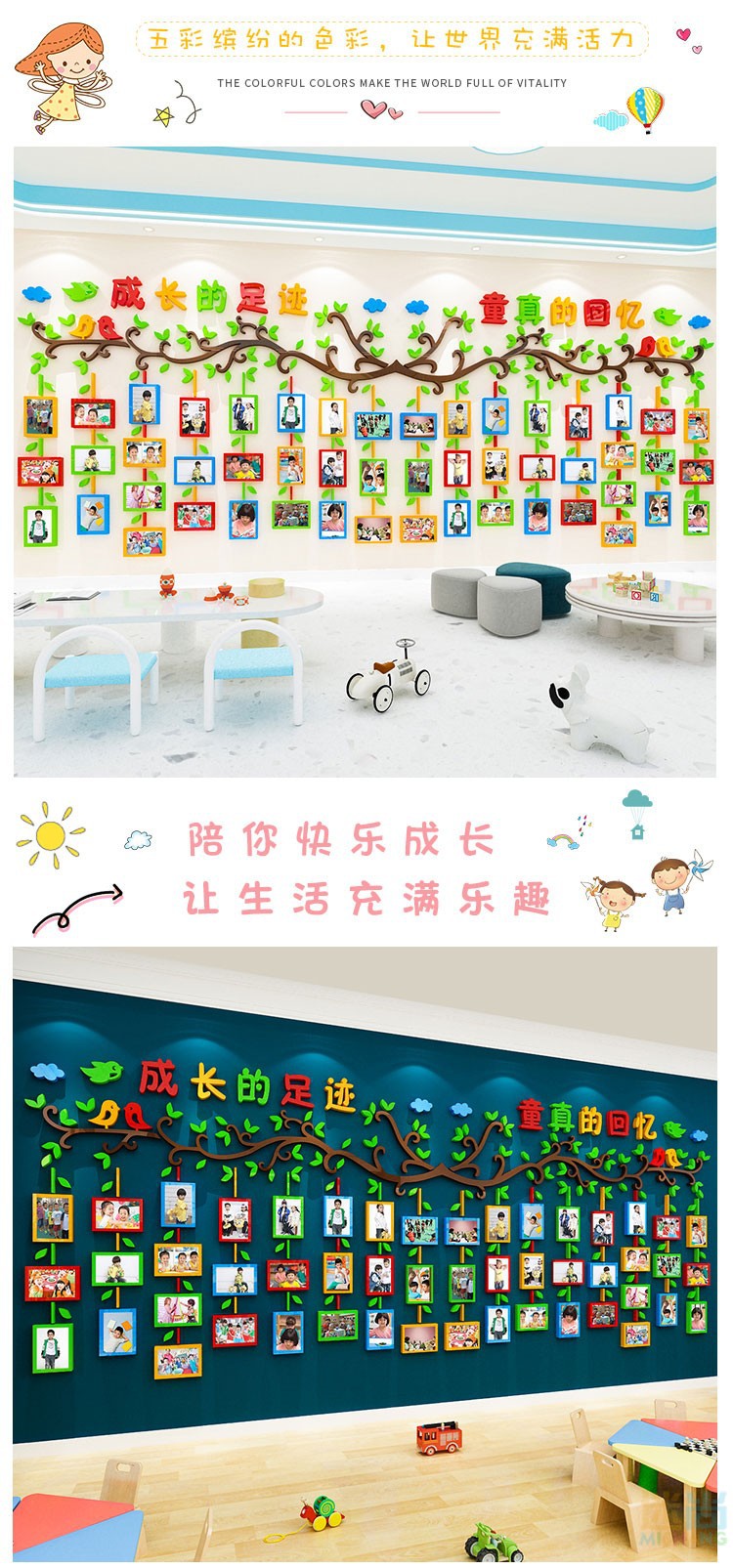 Kindergarten Environment Creation Photo Wall Decoration 3D Creative Student Style Display Classroom Layout Children's Growing Tree Wall Stickers