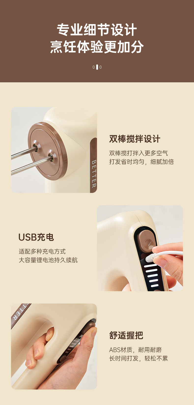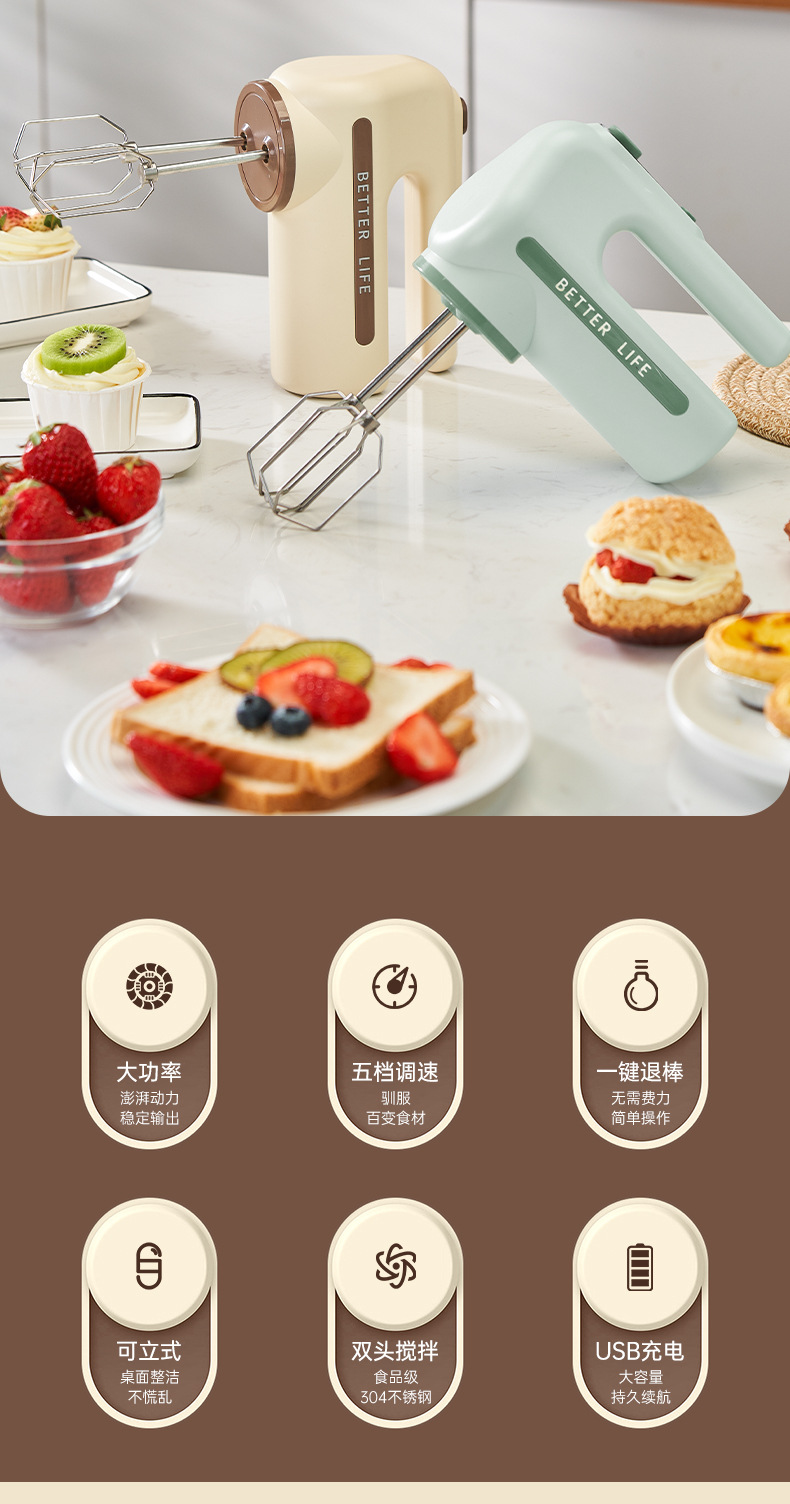 Handheld Wireless Rechargeable Egg Beater Household Double-Headed Multi-Gear Multifunction Agitator Baking Cream Blender