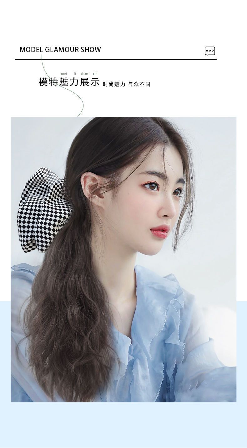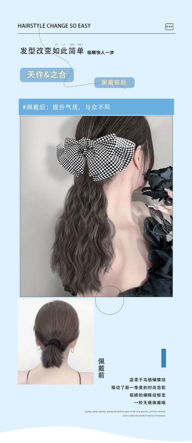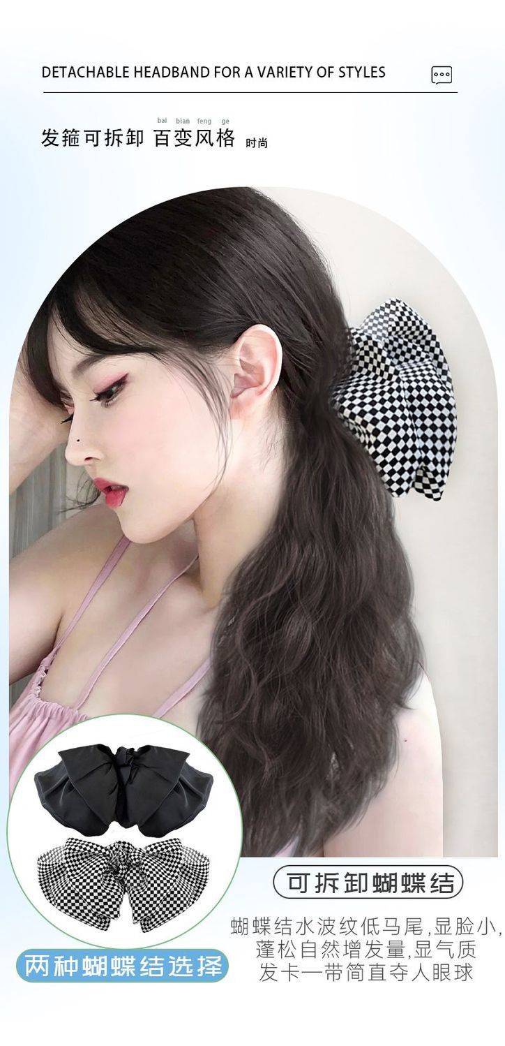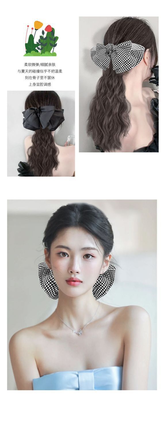 cloud hot ponytail-chessboard bow-natural black
