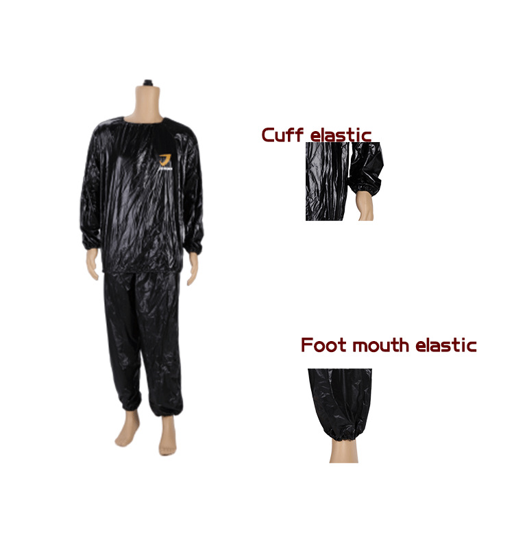 Customized PVC sauna suits are suitable for both men and women. Accept Logo and OEM custom orders. Process production based on customer drawings and samples. High-quality black sports sauna suits.