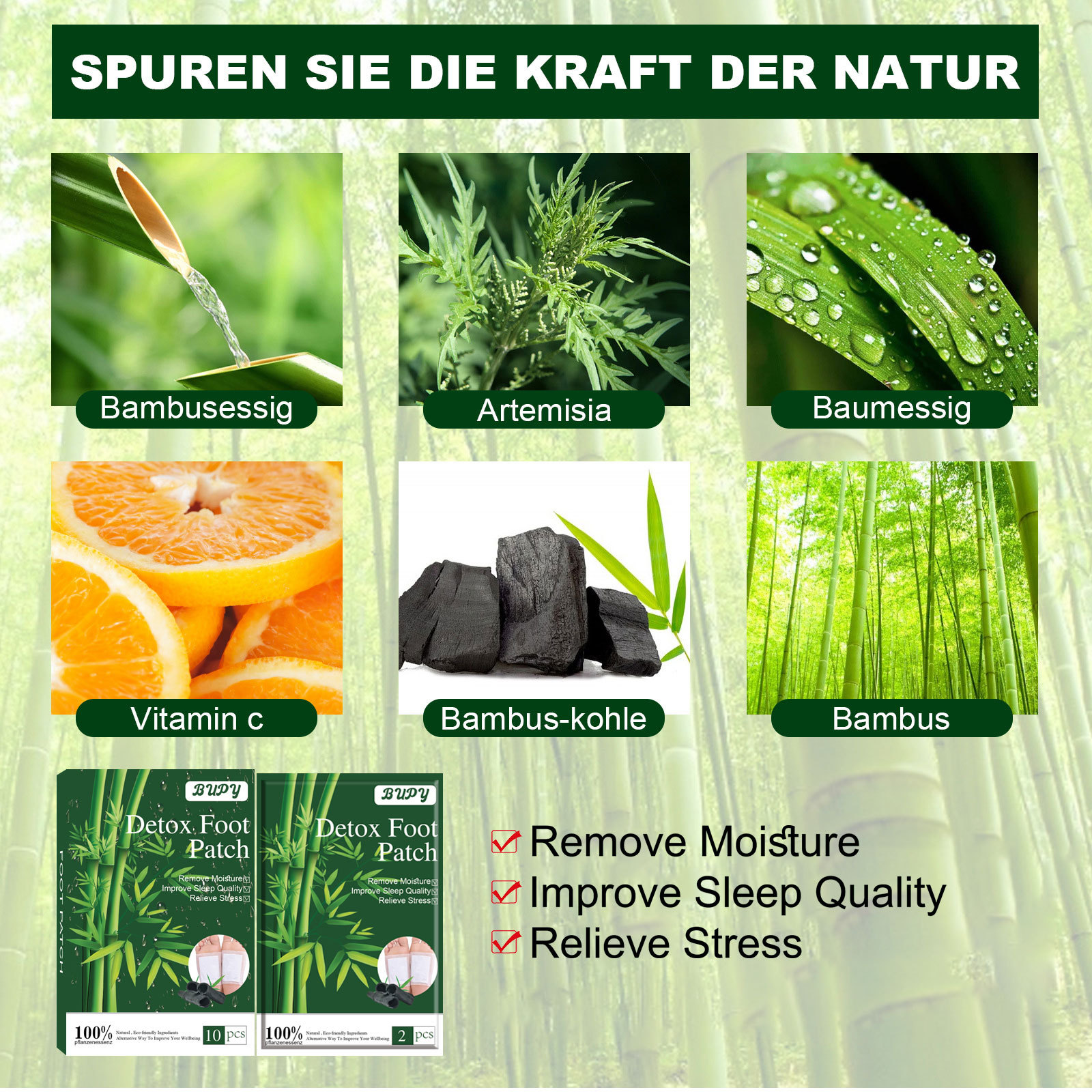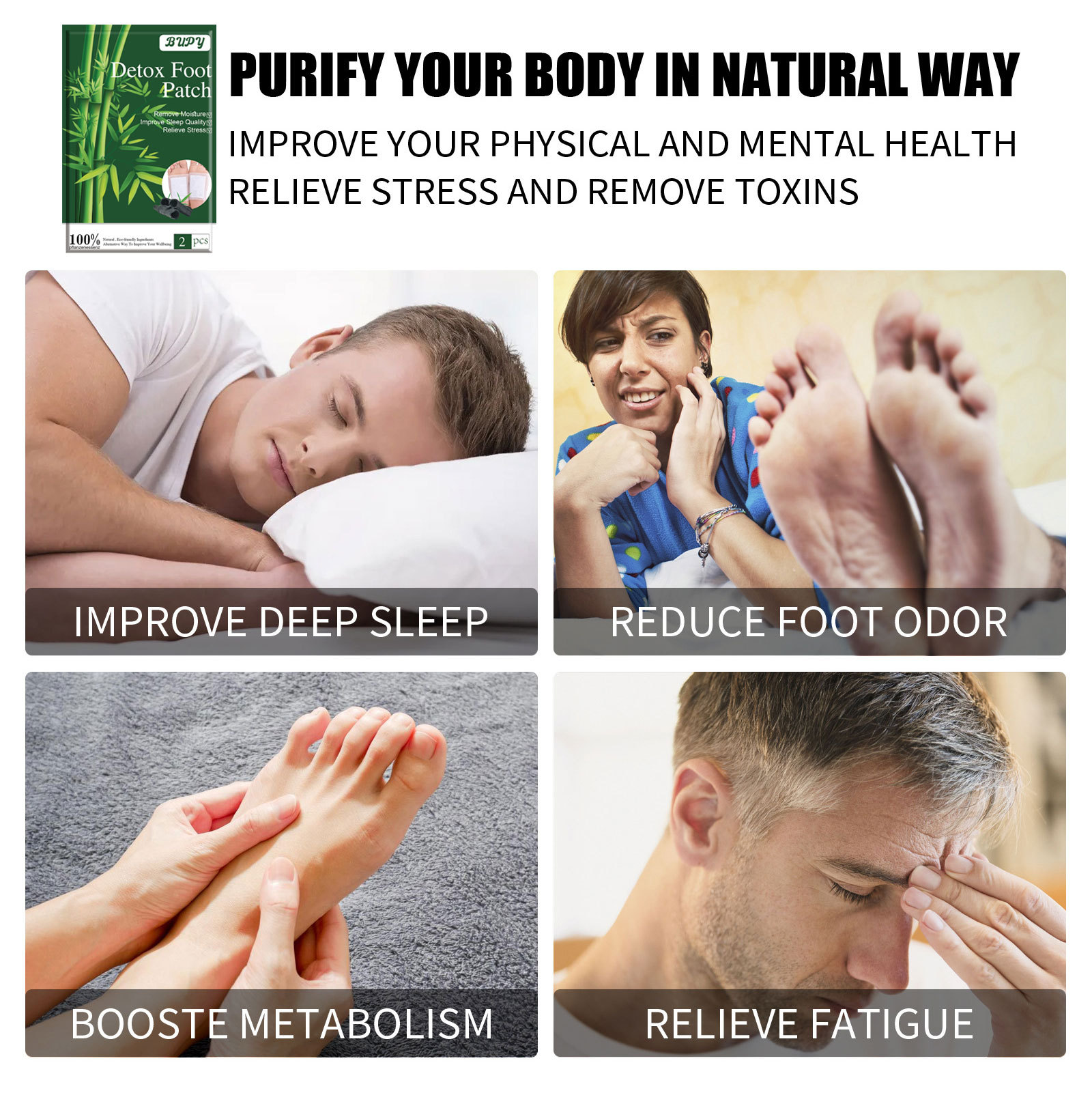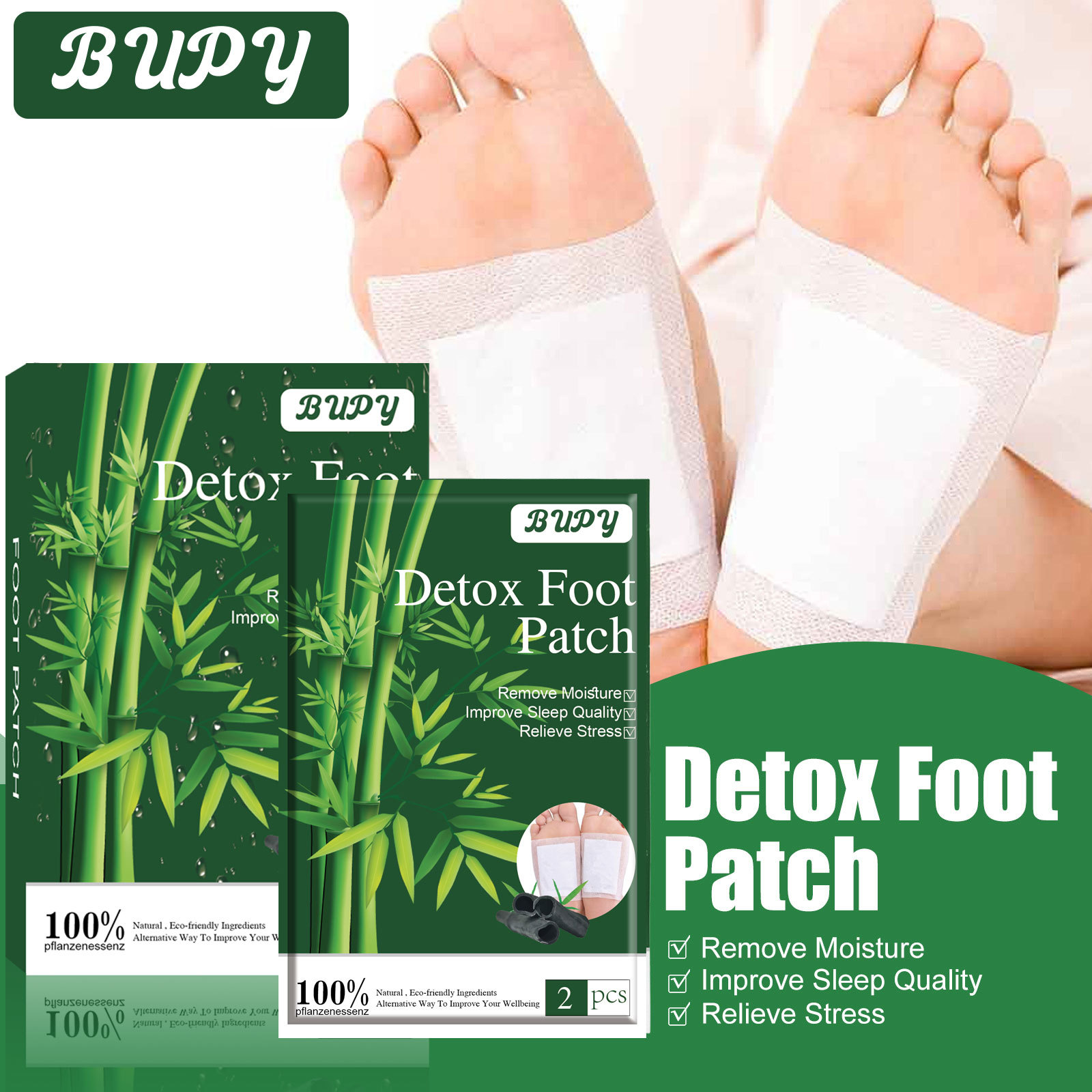 cross-border manufacturers bupy bamboo charcoal herbal foot patch relieve body sleep foot patch relieve foot patch natural bamboo charcoal foot patch