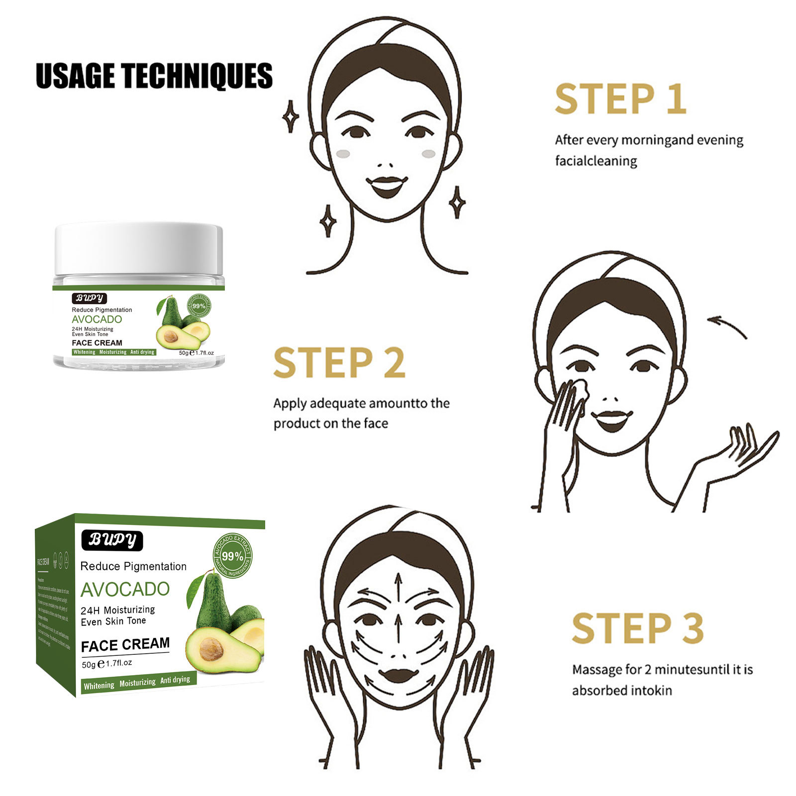 bupy cross-border full english avocado cream hydrating moisturizing and nourishing skin care refreshing non-greasy facial essence cream