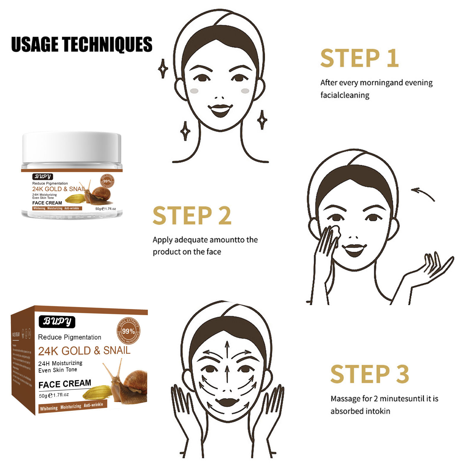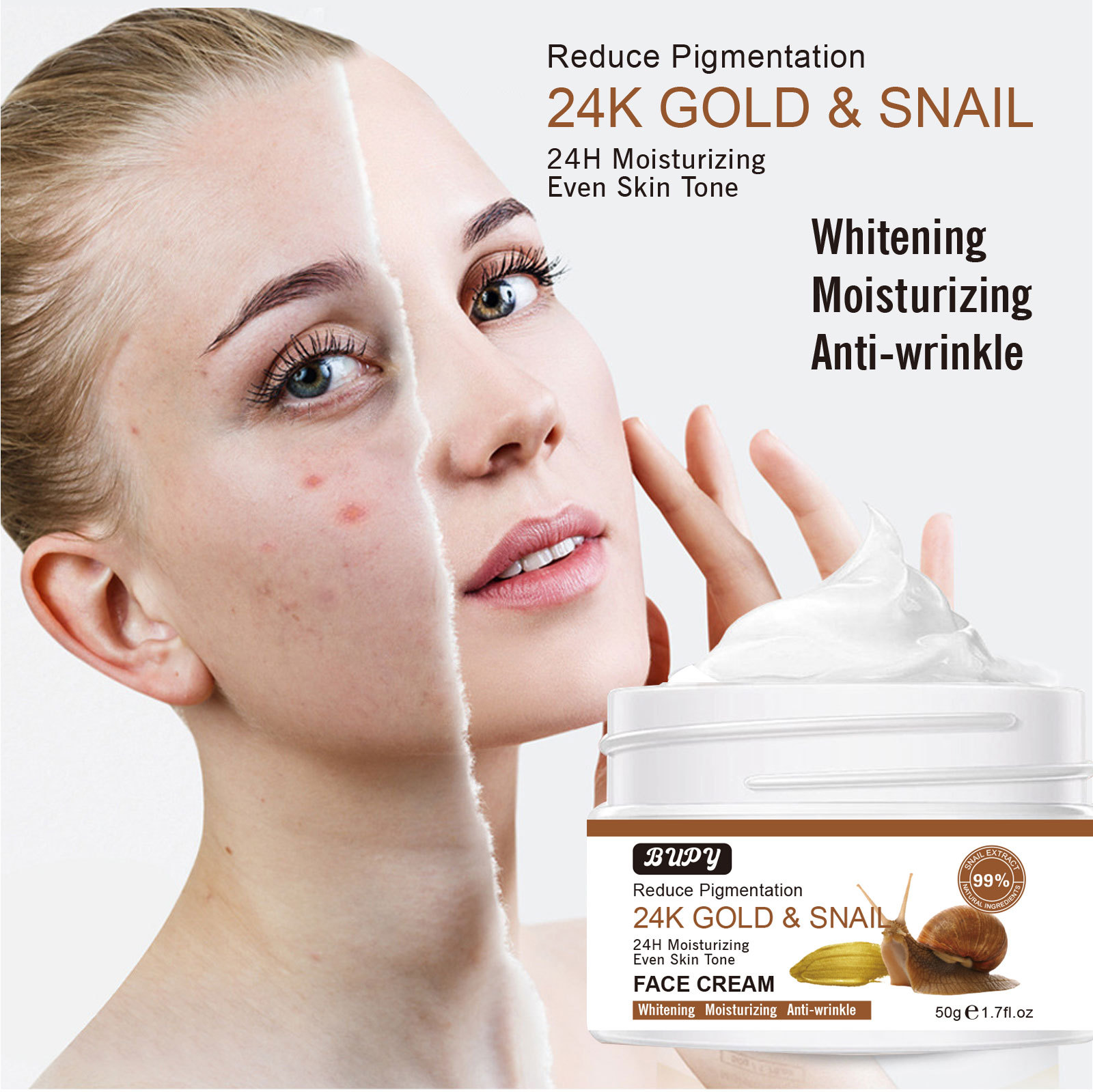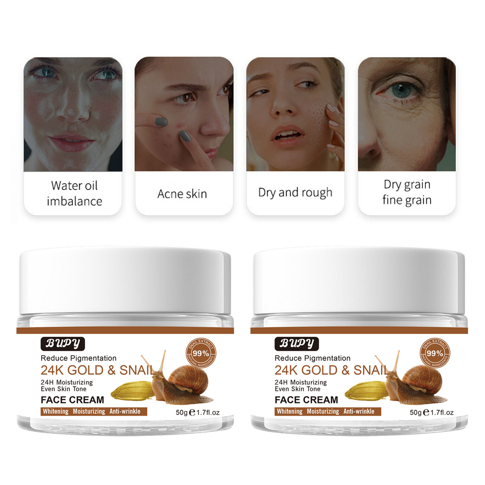 exclusive for cross-border bupy gold snail cream brightening skin rejuvenation facial care hydrating moisturizing and nourishing repair cream