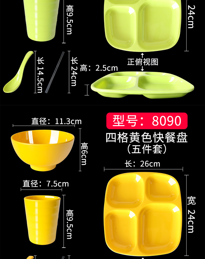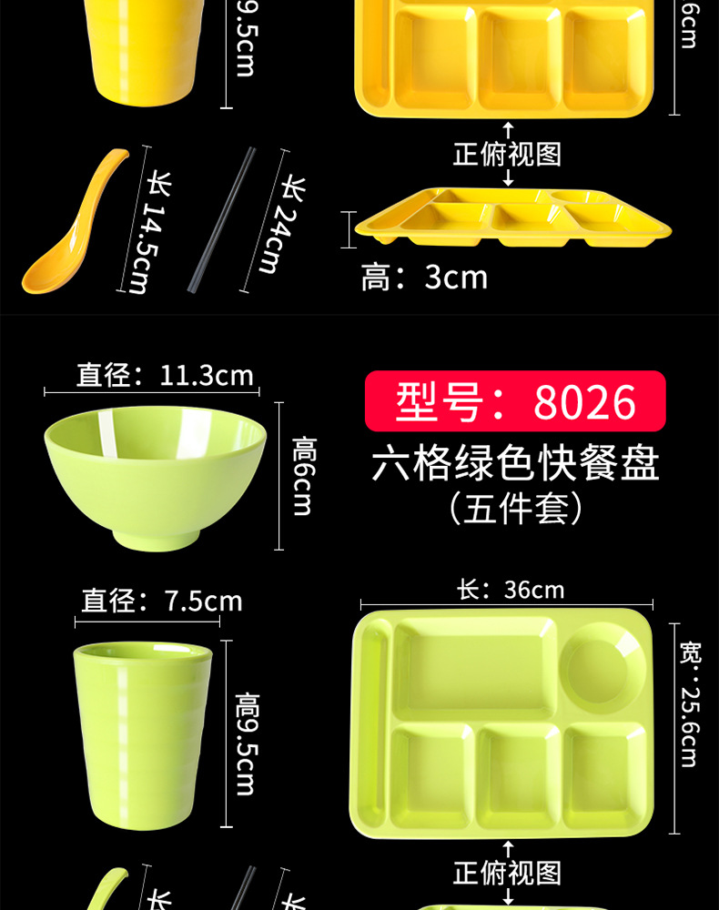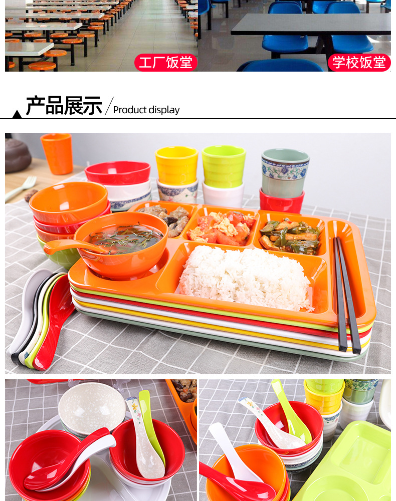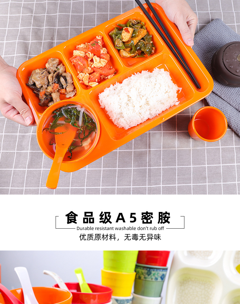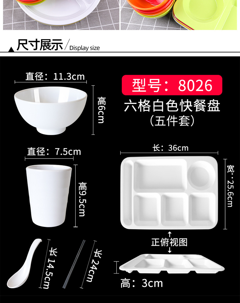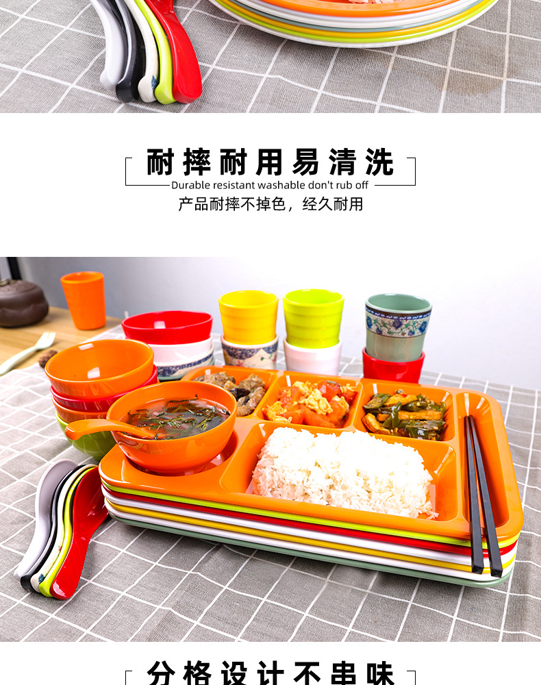 Fast Food Plate Grid Plate Commercial Plastic Melamine Tableware Rectangular Drop-Resistant Six Grid Canteen School Grid Meal Tray