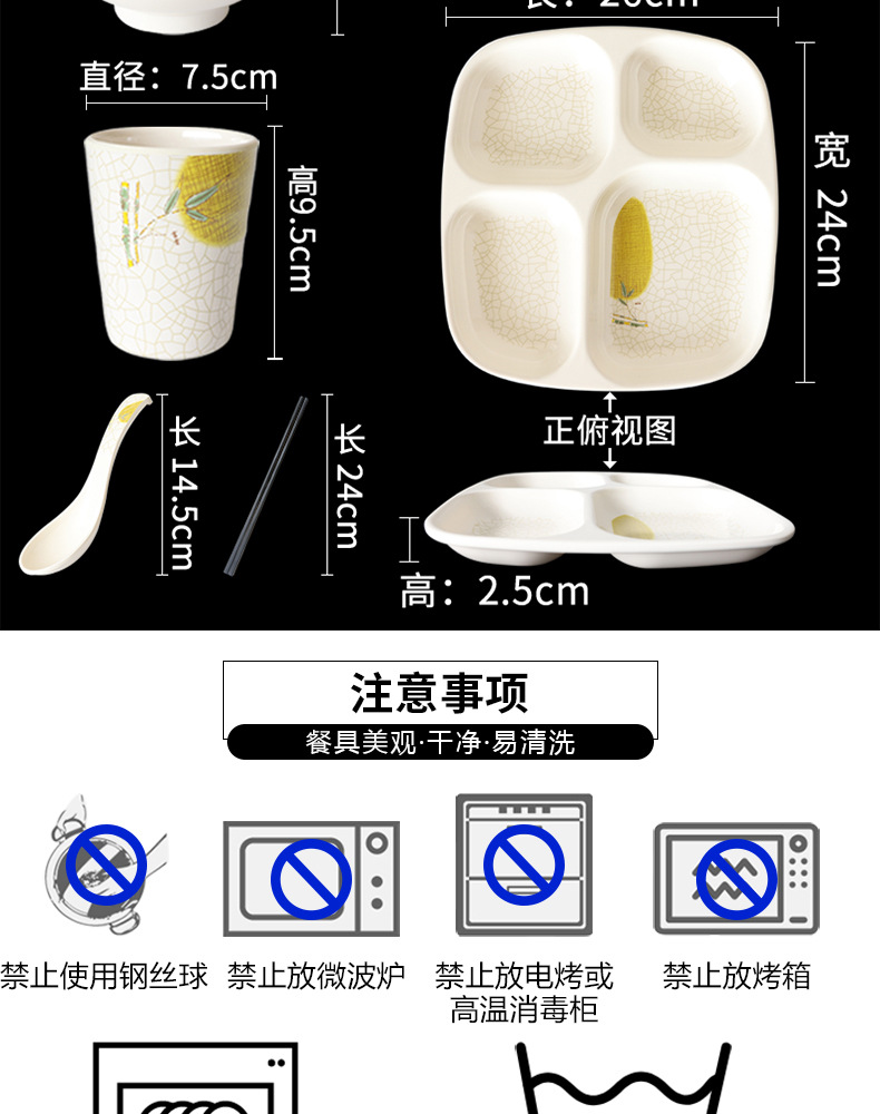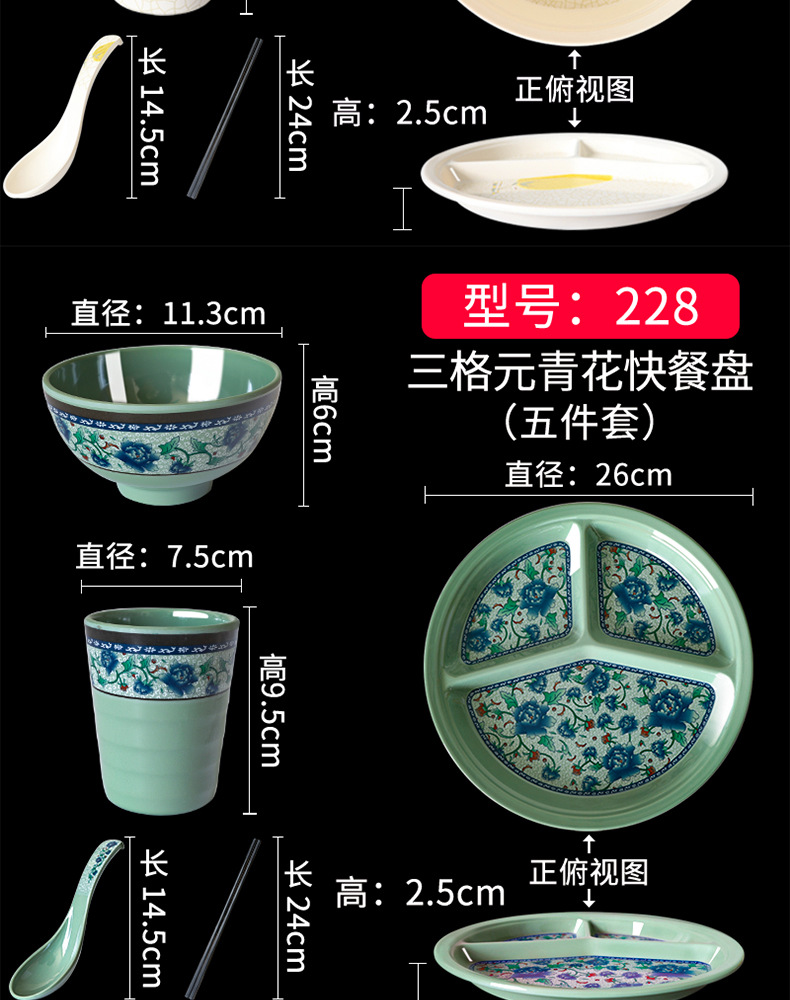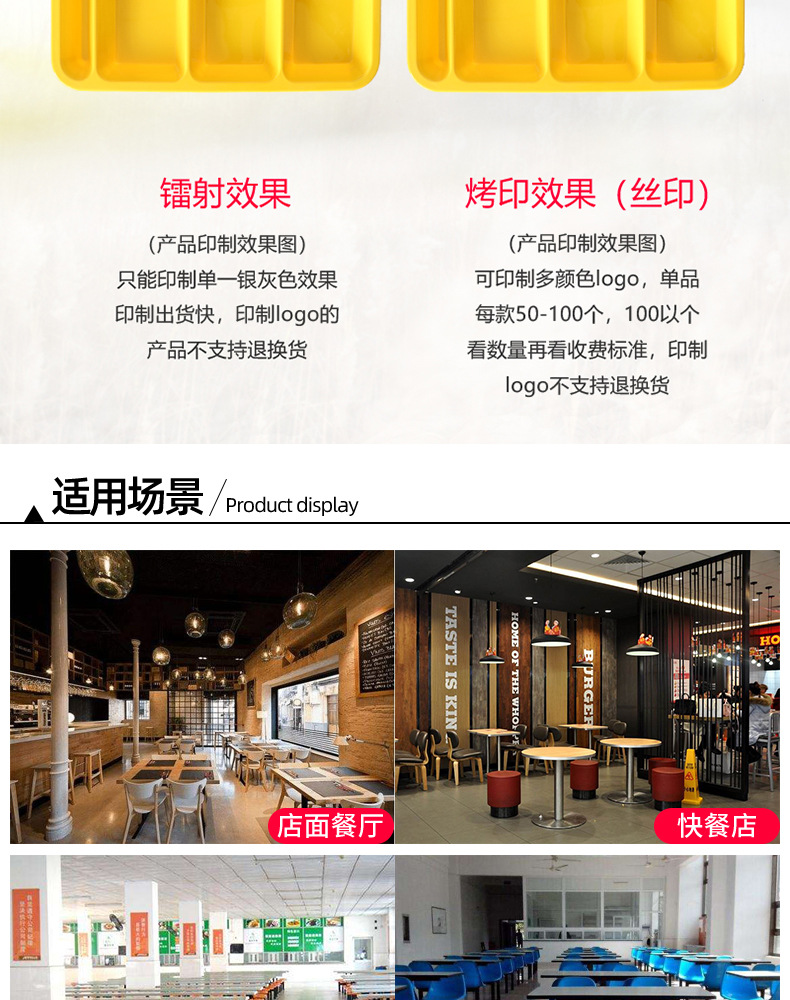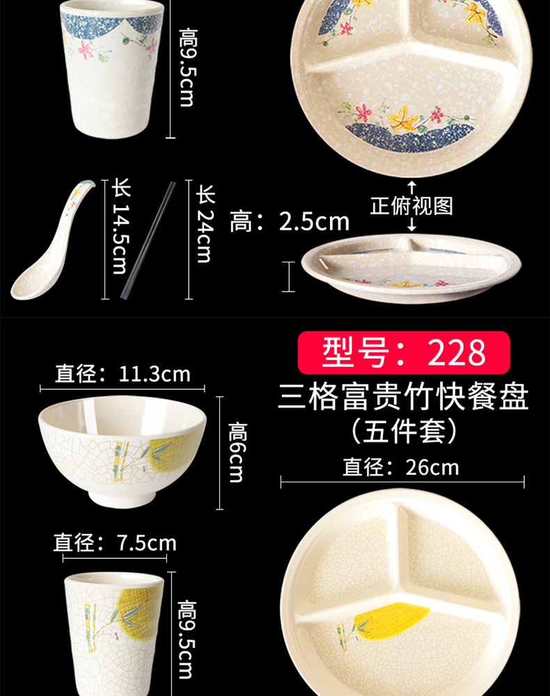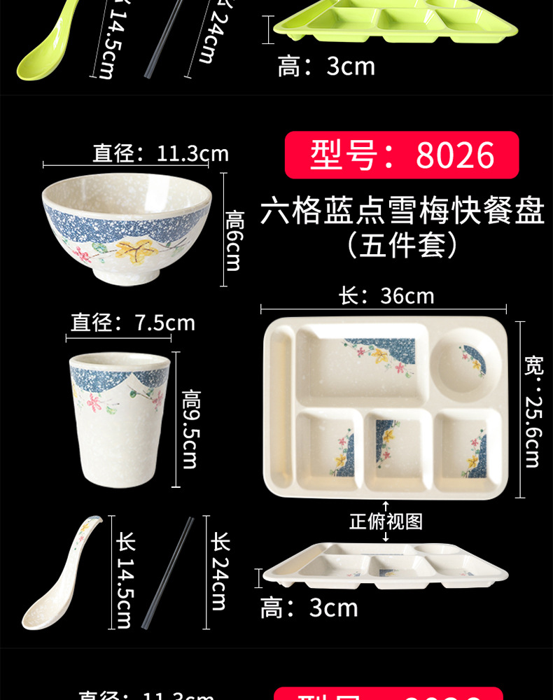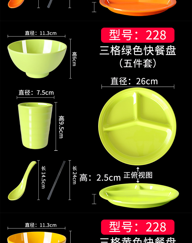 Fast Food Plate Grid Plate Commercial Plastic Melamine Tableware Rectangular Drop-Resistant Six Grid Canteen School Grid Meal Tray