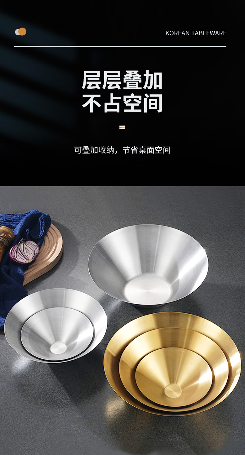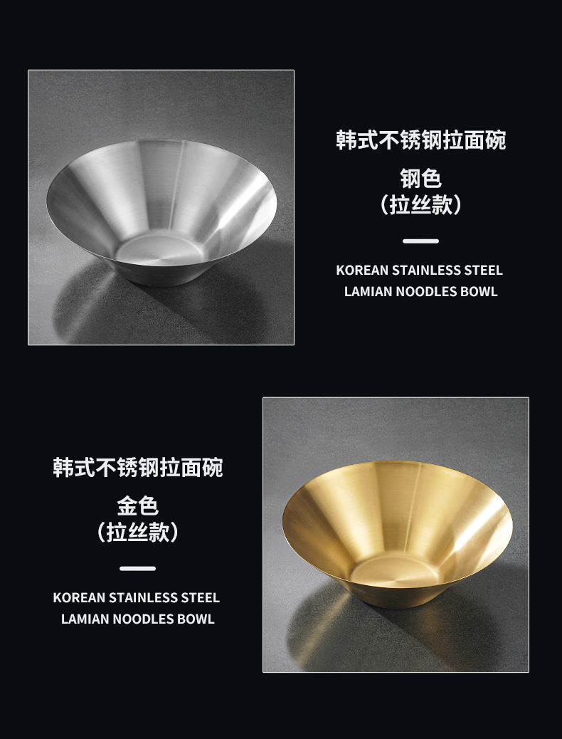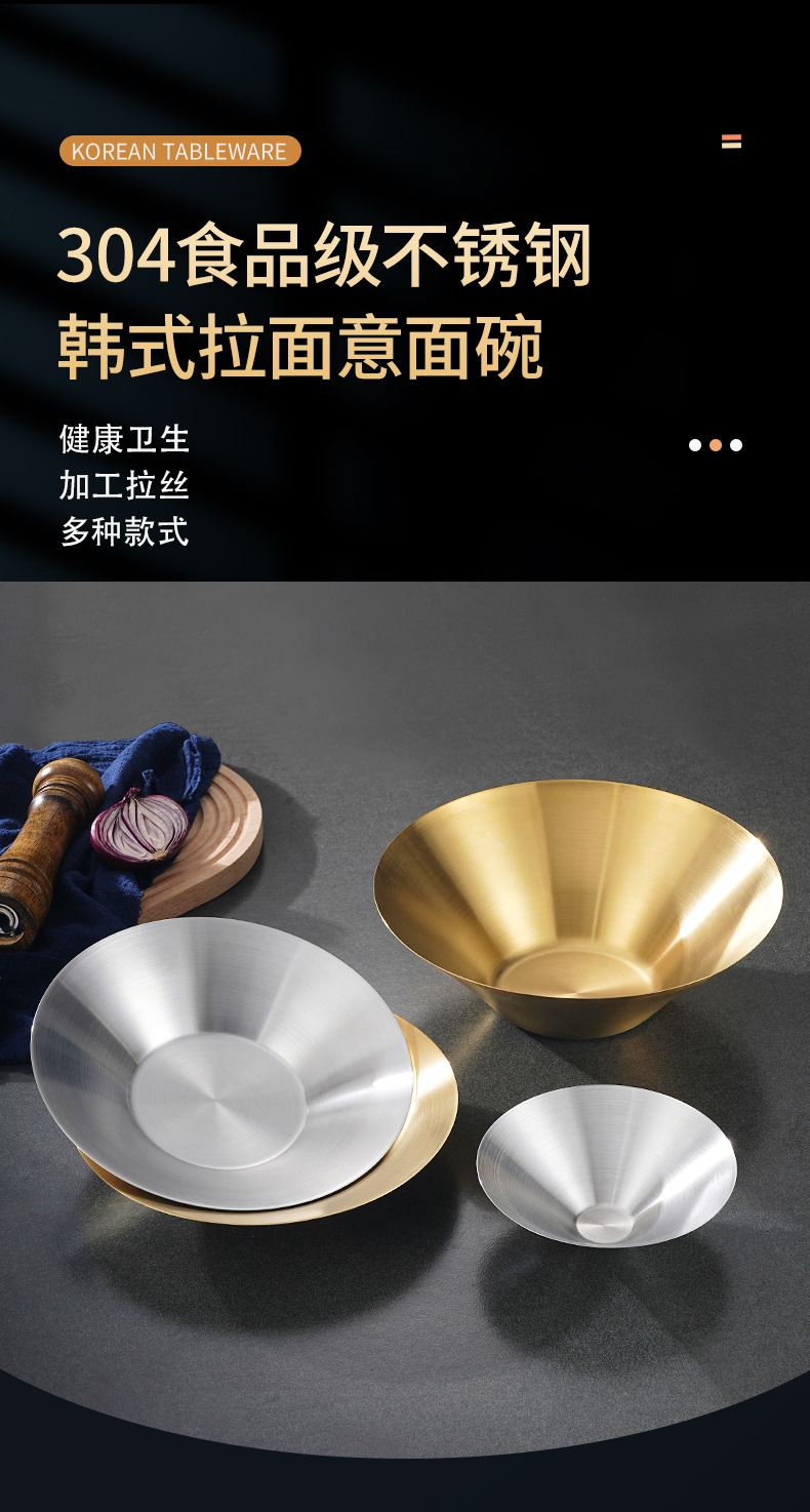 304 Stainless Steel Ramen Bowl Korean Restaurant Golden Pasta Bowl Thickened Rice Risotto Bowl Commercial Fruit Salad Bowl