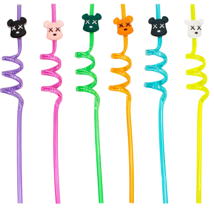 Amazon Pet Drink Cartoon Art Modeling Spiral Straw Set Hot Sale Party Decoration Factory Direct Sales