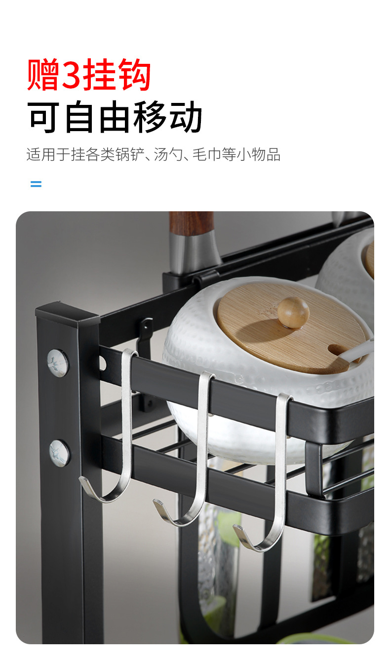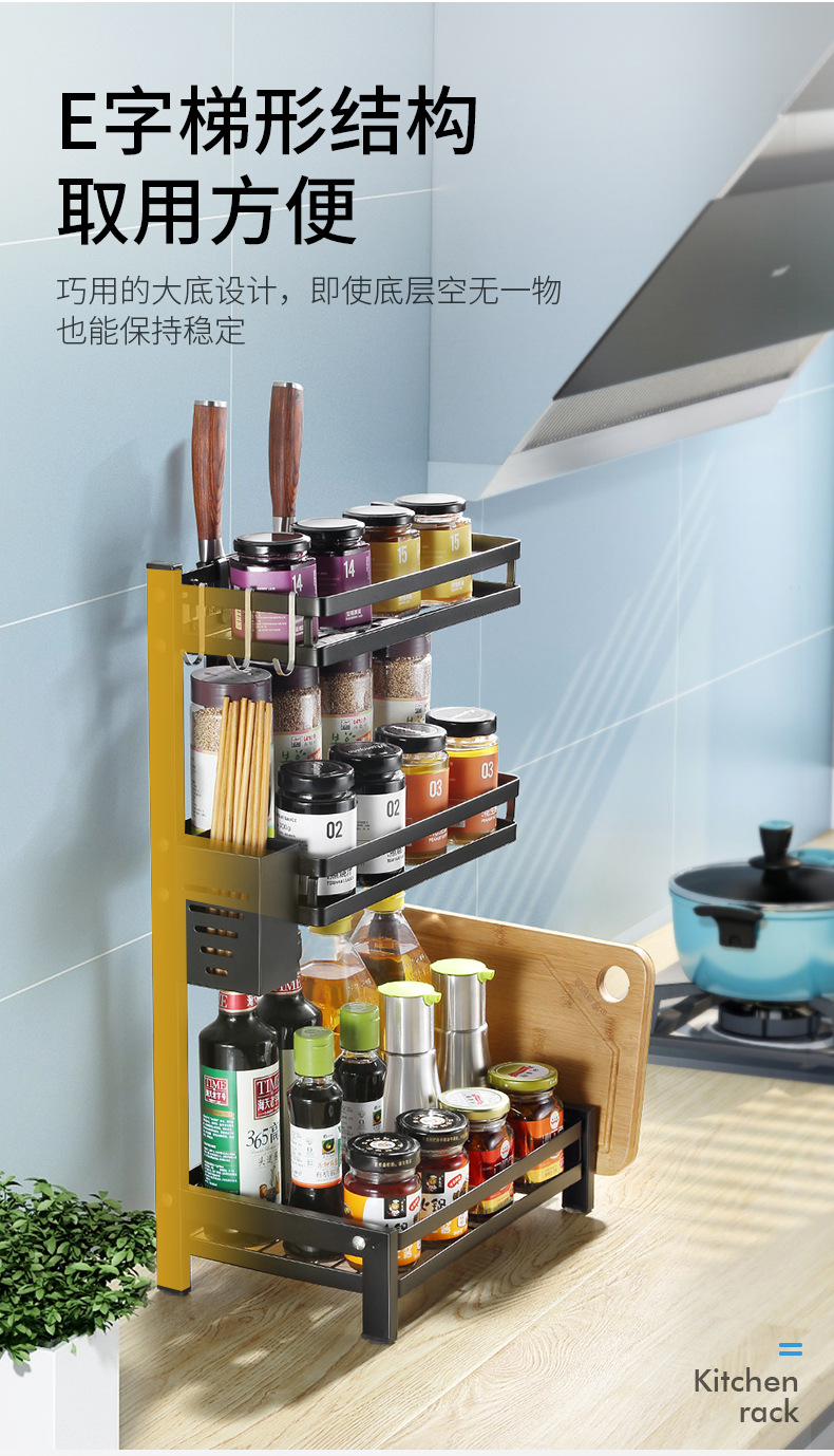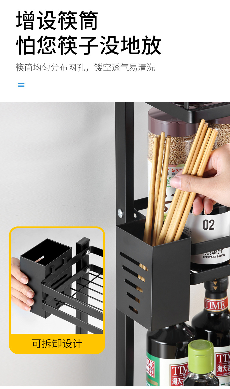 punch-free kitchen storage rack floor black seasoning seasoning finishing rack oil salt soy sauce and vinegar bottle shelf