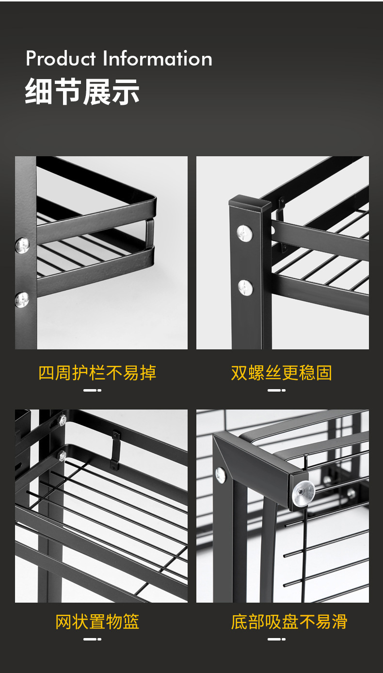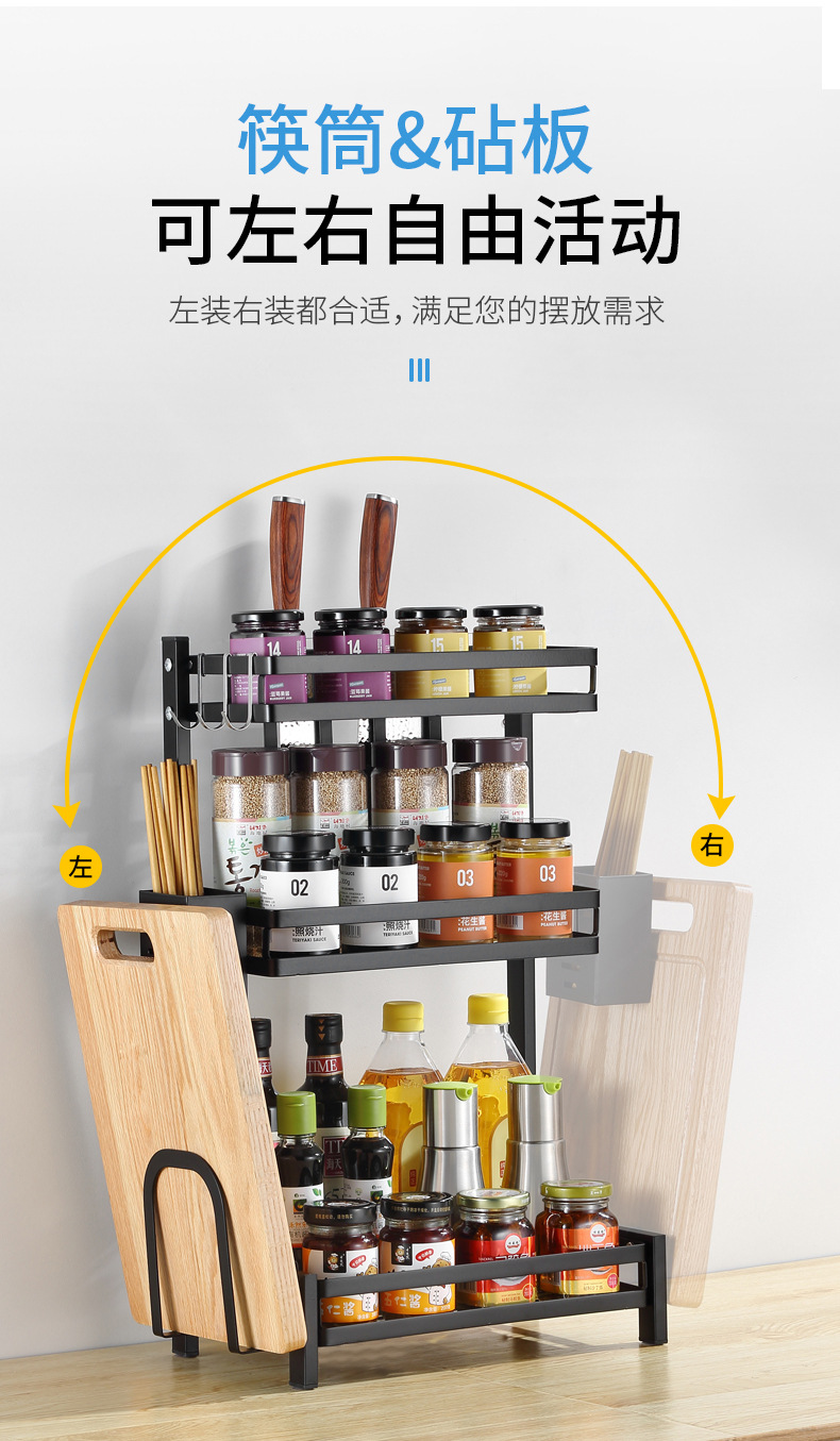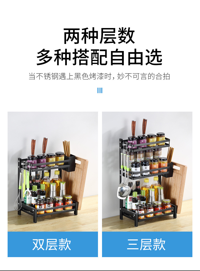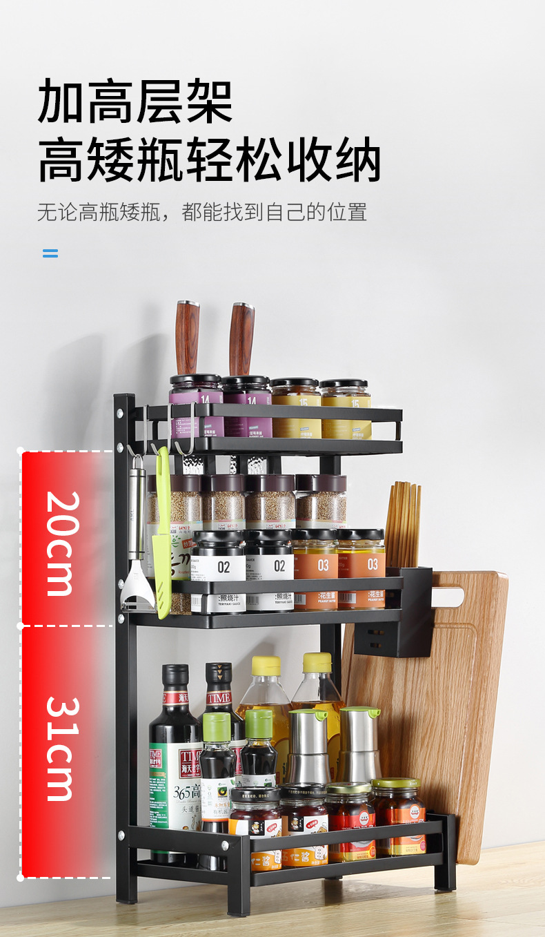 punch-free kitchen storage rack floor black seasoning seasoning finishing rack oil salt soy sauce and vinegar bottle shelf