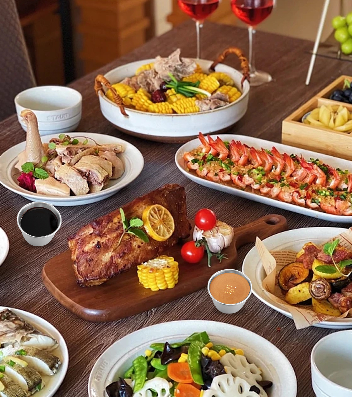 50/70ml sauce cup 304 stainless steel dipping dish with lid leakproof salad sauce container dipping cup seasoning dish