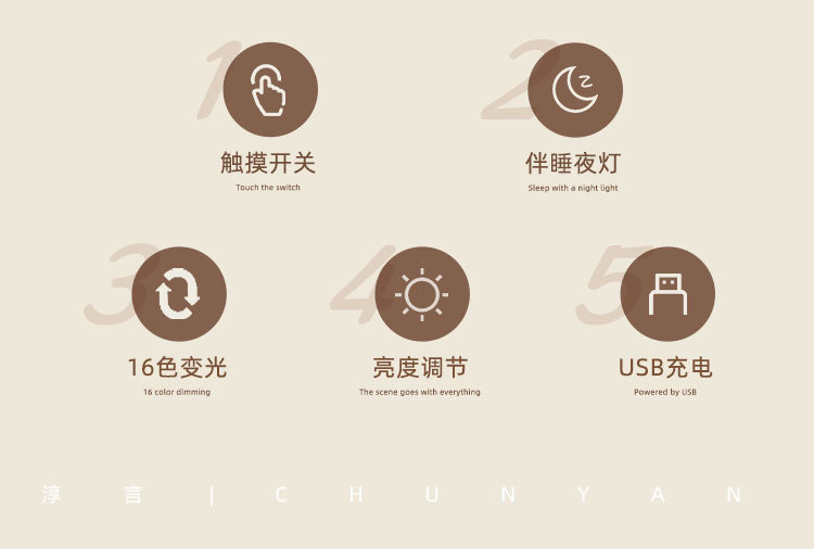 chun yan jpj small night lamp internet celebrity bedroom rotating bedside lamp led charging ambience light decorative ornaments girls' gifts
