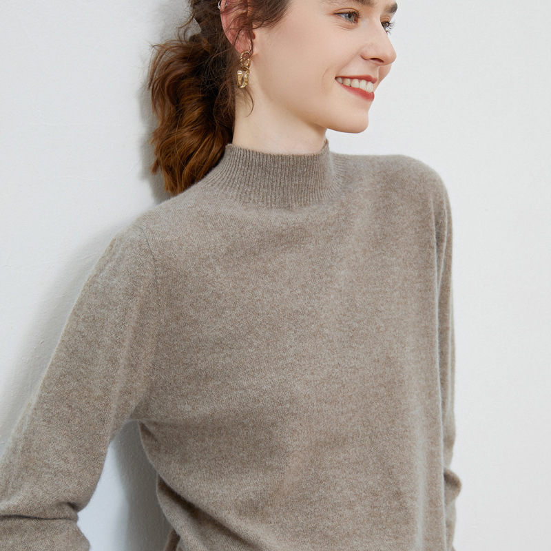 New Front Line Ready-Made Garments Australian Mernu Whole Woolen Sweater Women's Half-Height Knitted Solid Color Base Ride Wool Sweater