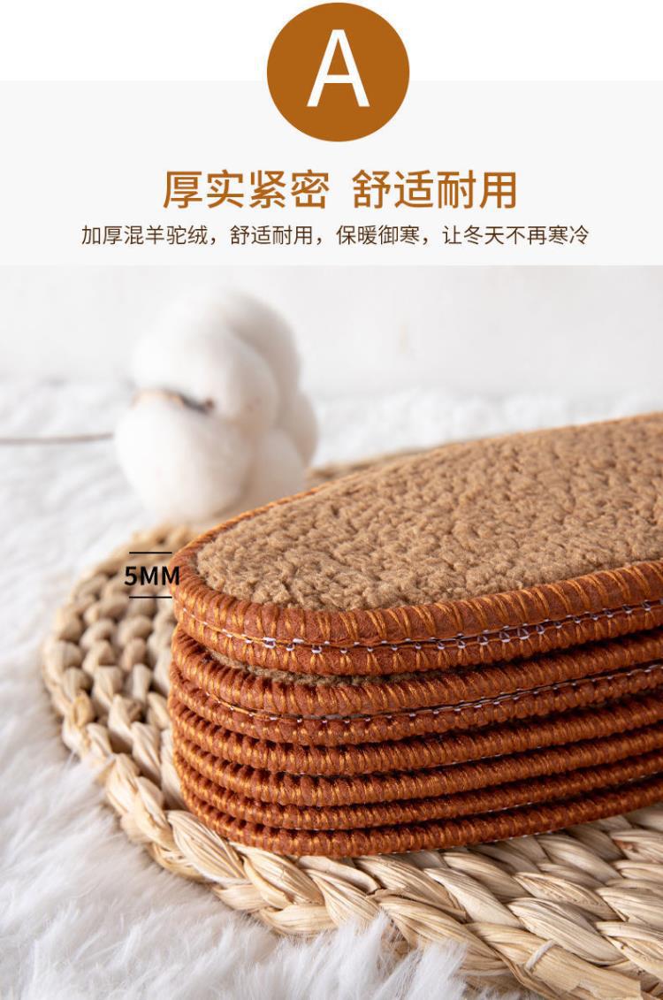 Fur Integrated Insole Wholesale Stall Thickened plus Velvet Cotton Insole Alpaca Fleece/Fiber Men and Women Cold-Proof Warm Insole