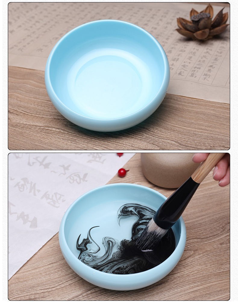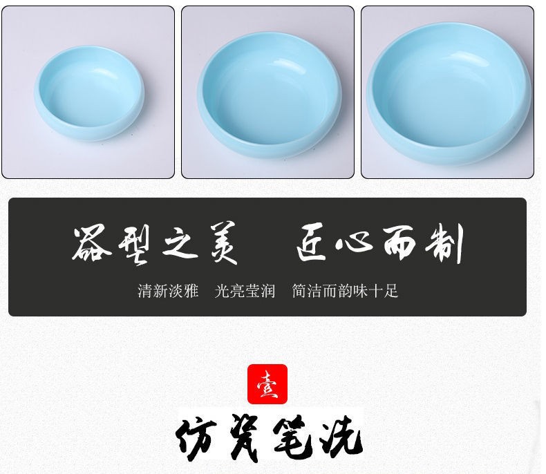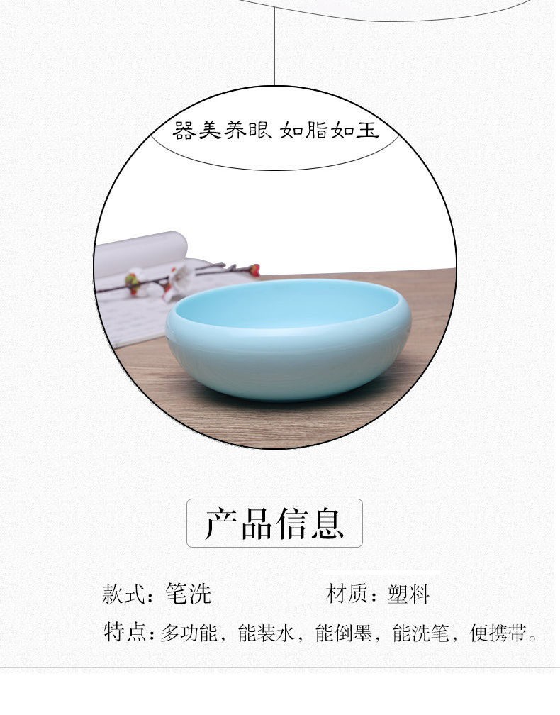 Imitation Jade Imitation Porcelain Writing-Brush Washer Chinese Painting Tea Basin Brush Washing Cylinder Bowl Multifunctional Ink Plate Ink Plate Ink Cup Table Calligraphy Materials Study Decoration