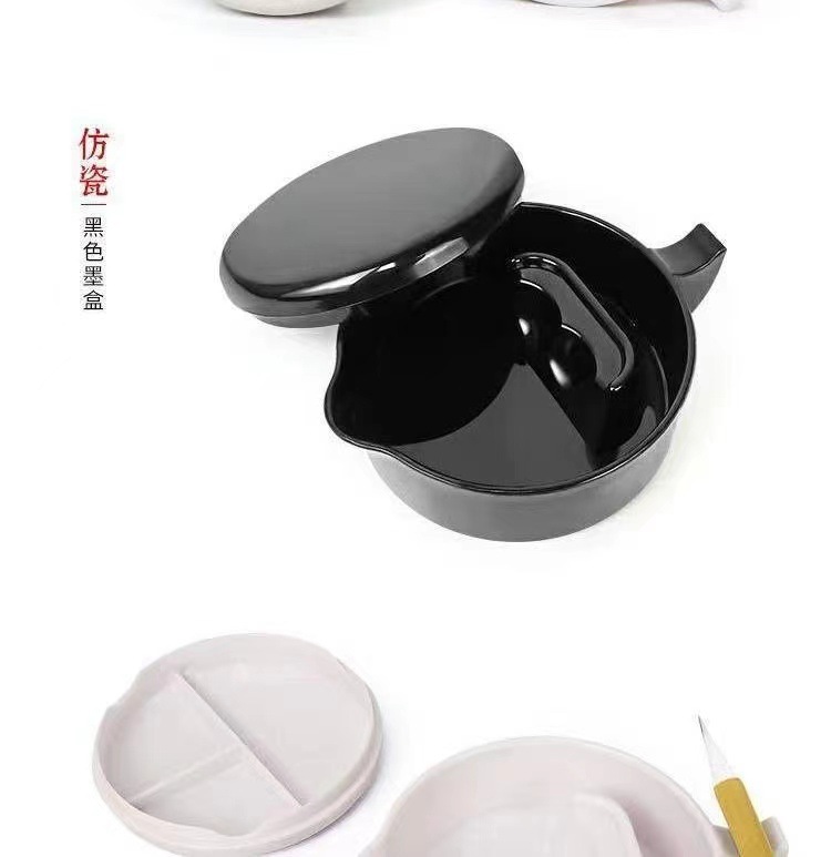 Multifunctional Ink Pool Plastic Black Ink Cartridge Student with Cover Chopsticks Table Drop-Resistant Dousheng Ink Multifunctional Ink Plate for Calligraphy Wholesale
