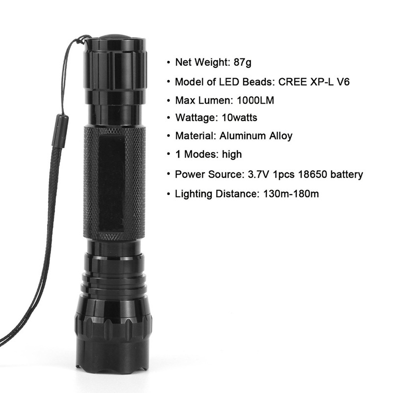 outdoor strong light t6 flashlight 501b aluminum alloy flashlight super bright emergency 18650 black light bulb flashlight