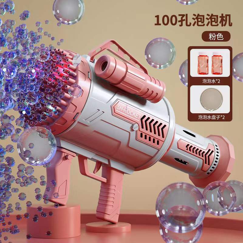 pink 64 holes (rechargeable version lights) 40 packs of bubble liquid colorful lights + bubble water