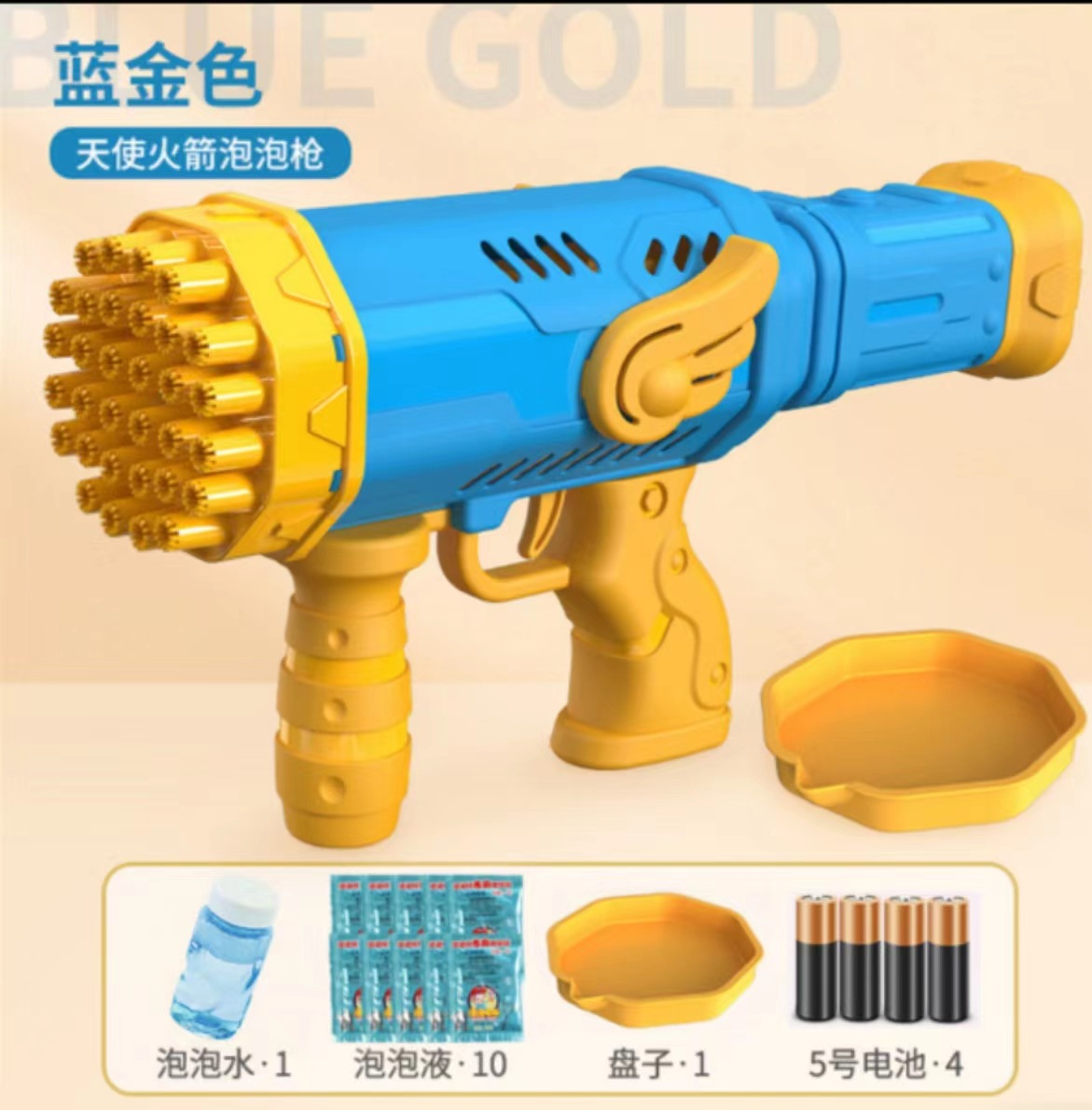 32-hole blue bubble machine (light version) free battery +10 packs bubble mixture